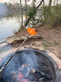 My Husband and I really enjoyed our stay here . We loved being out on the porch and looking out onto the lake . The home is very clean and has every thing you need . We sat out on the dock and fished one night and watched the beautiful sunset . The neighborhood is very quiet and we always felt safe . High Falls is beautiful . We would definitely come back , thank you for sharing your home .