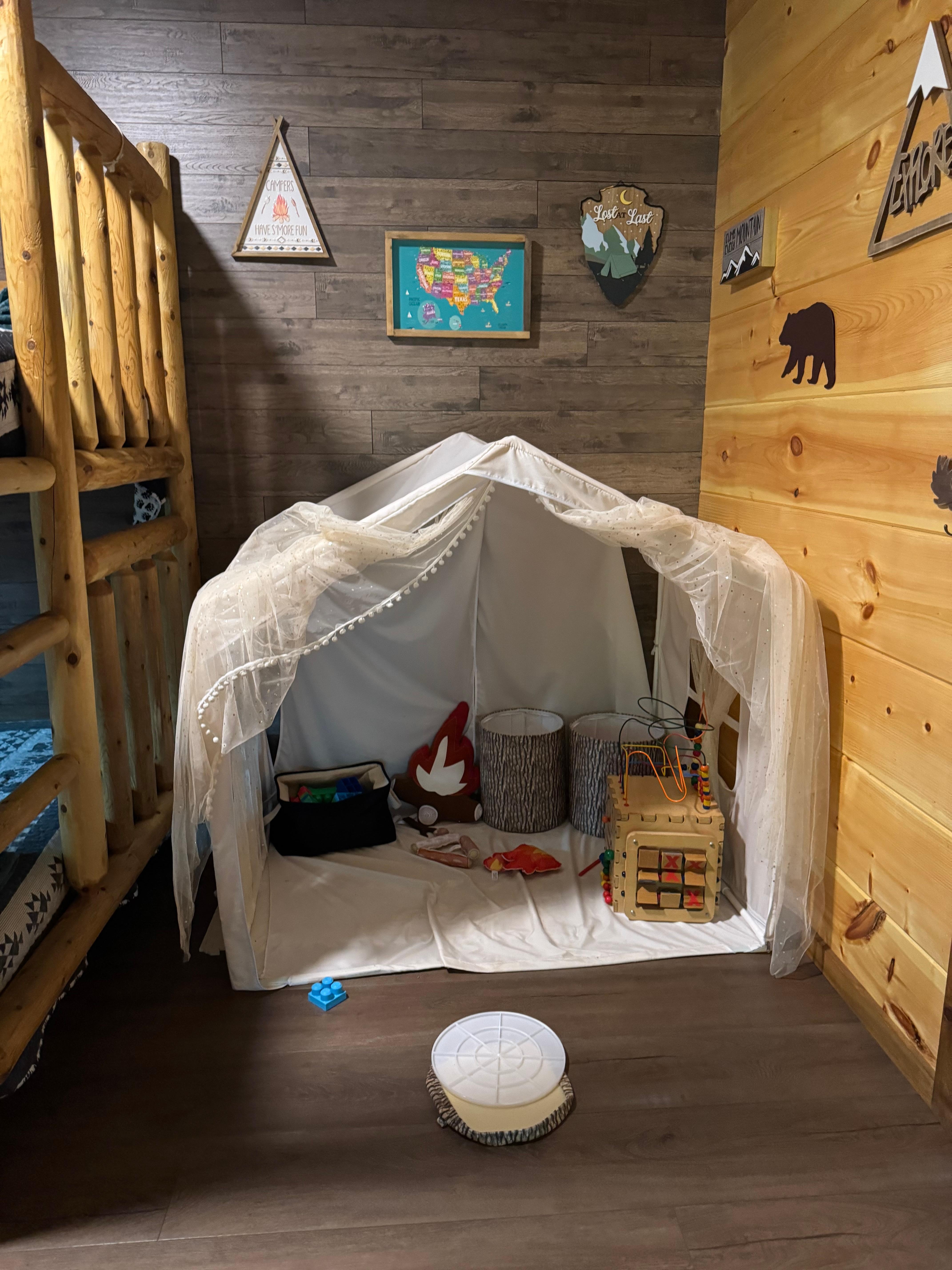 Family House: We provide a high chair, booster seat, pack-and-play, and baby gate upon request. We have an indoor adventure tent with baby/toddler toys for the little ones in the bunk bedroom. Bunkbeds are Queen sized; big enough for multiple children or some fun adults!