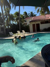 Our family stay here was very nice! Beware if you are driving yourself here the roads are rough and our google maps sent us in the wrong direction to a dead end. Luckily the host helped us get there on "Cangrejera Road" which is the actual road to get there. The house is about 30min away from the closest grocery stores and markets. The house itself was very big and had plenty of room for every one, all of the rooms have a/c in them which is nice. The living room and kitchen were also nice, you may want to take your own utensils, knives ect. since the ones that are there are not in the best shape. We enjoyed the pool and outdoor patio especially the kids. The beach has very big and strong waves so we were not able to get in the beach and enjoy it. That part was a bummer we were only able to put our feet in the water since the waves were so strong. The house is nice it could use some updates, but overall happy with our stay here.
