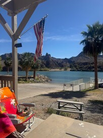 This waterfront tiny house comes with big views! ON the CALIFORNIA SIDE in RIVER LODGE RESORT ! Located directly on the Parker Strip. With a master, loft, bathroom, living room, and kitchen this house will surely meet all your getaway needs! Enjoy your stay while kicking back on the patio, on the water, or chilling inside under the two air conditioners. This house comes fully equipped for a great fun-filled getaway. Three queen beds, two massive tv's and one of the comfiest sectionals.