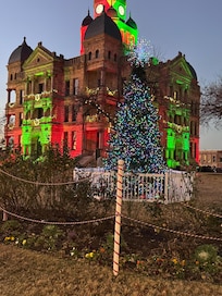 Located directly on the downtown square with courthouse views. The open floor plan boasts a fully equipped kitchen featuring stainless steel appliances and granite counter tops overlooking the living room - fully stocked with any cookware you might need. The master features large windows overlooking the historic Denton County Courthouse and beautifully updated master bath with over-sized rain shower. Washer/dryer and half bath are located in the back of the loft. Located just minutes from both UNT, Apogee Stadium, TWU, the Denton Convention Center, and more. We've stocked this loft with all the essentials you will need for your stay from coffee to toiletries to plush towels and high quality linens.