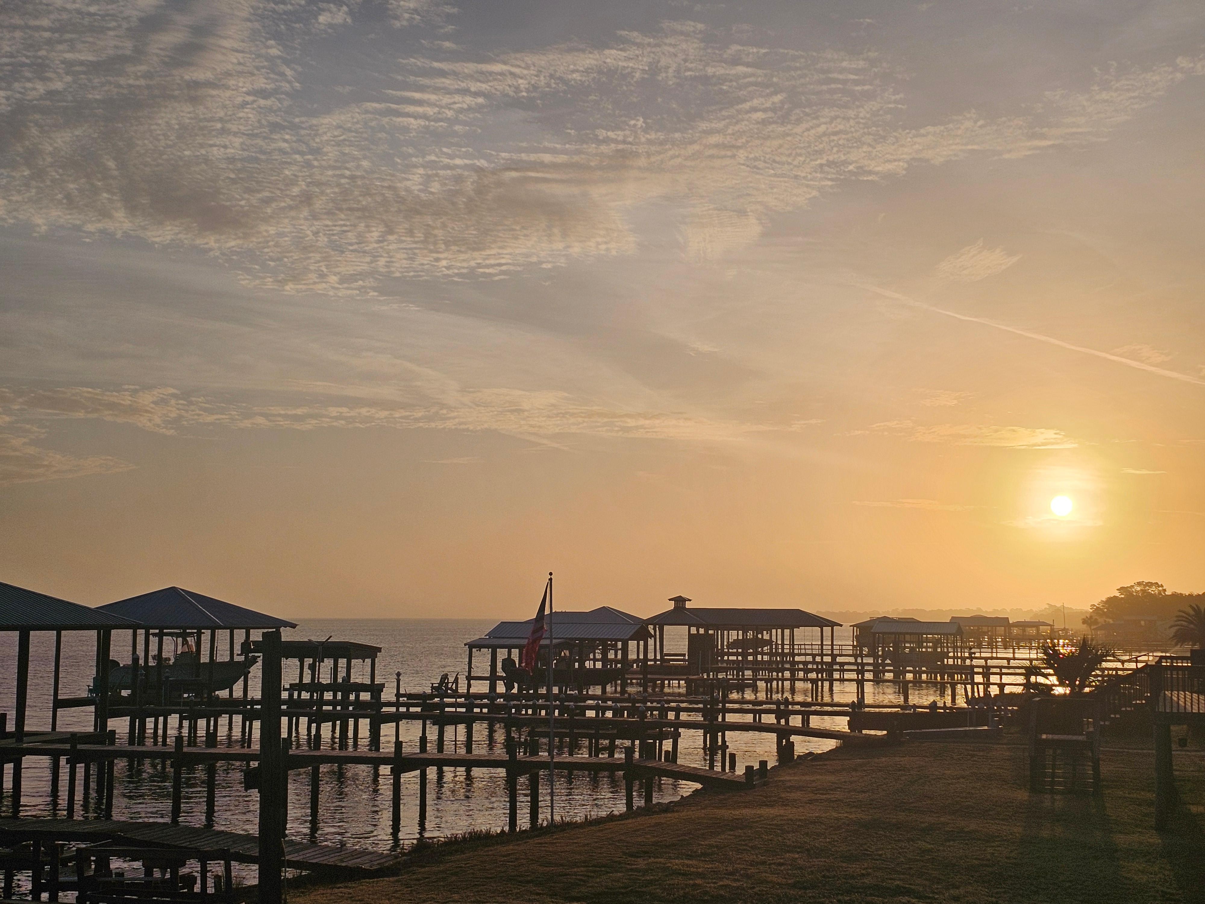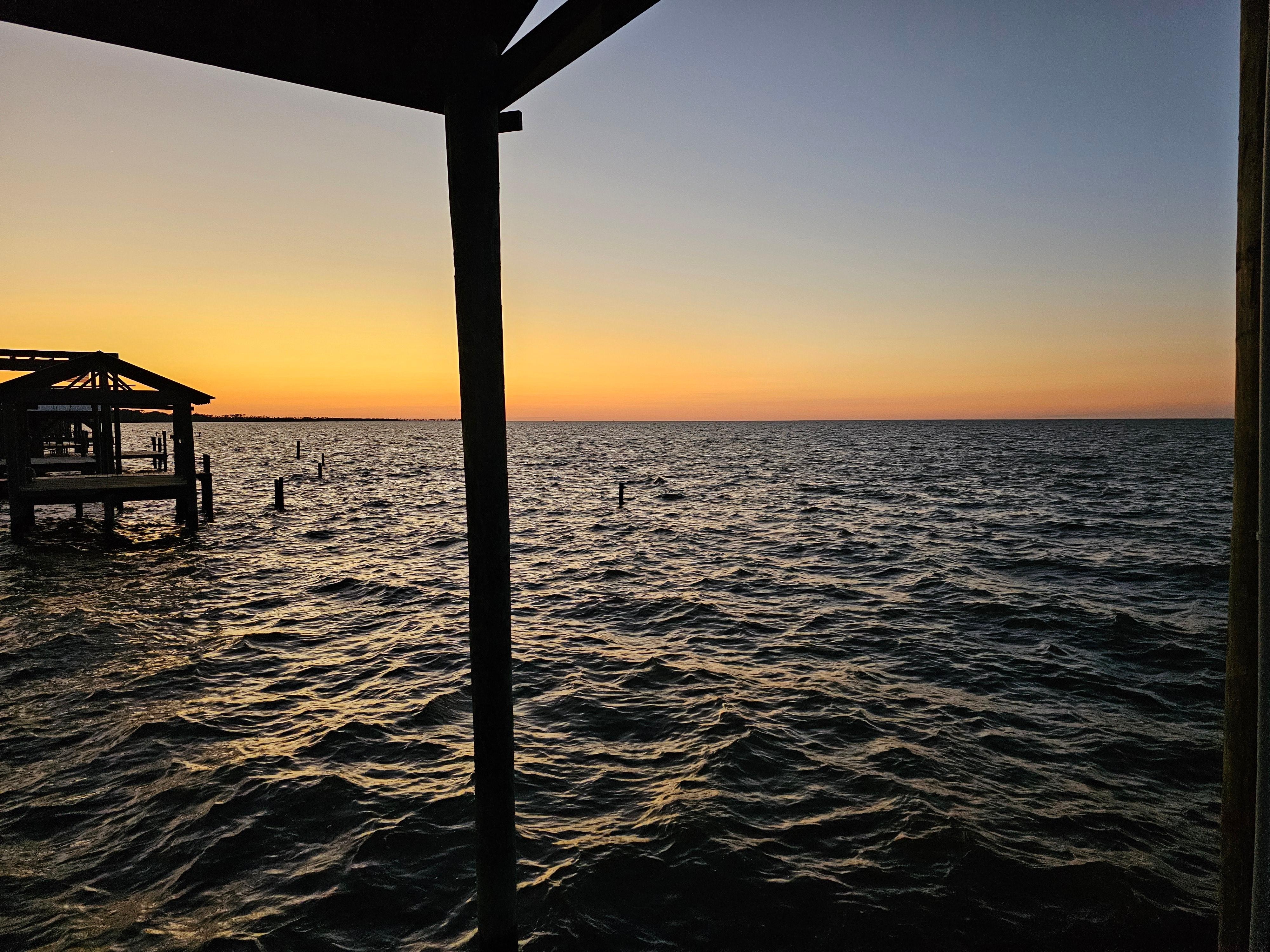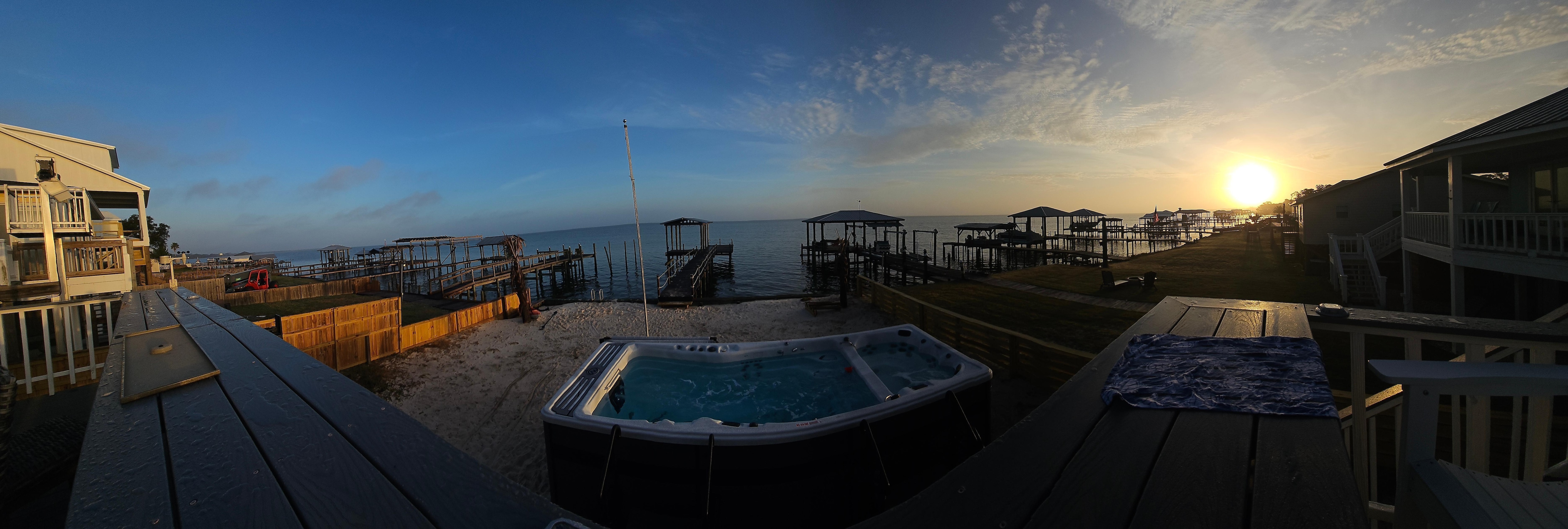 Peaceful bayfront home w pool, ready for you to relax, fish and soak up the sun and beautiful sunsets. Great space for big family or friend gatherings with 2 BD/ 2 BA main living area and separate 2 BD / 1 small BA suite, ground level. Property is located on the Fort Morgan Peninsula away from the hustle & bustle of the main Gulf Shores tourist area yet close enough to visit all the attractions if desired. Kitchen is fully equipped with appliances, cookware and serving ware. As well as brand new hot tub / pool unit right next to an outdoor bar & grill, gas fire pit table, porch swing, outdoor shower for rinse or cool off, crab cages, beach games on site to enjoy next to personal 50 foot dock. Don't miss sitting on the dock of the bay!