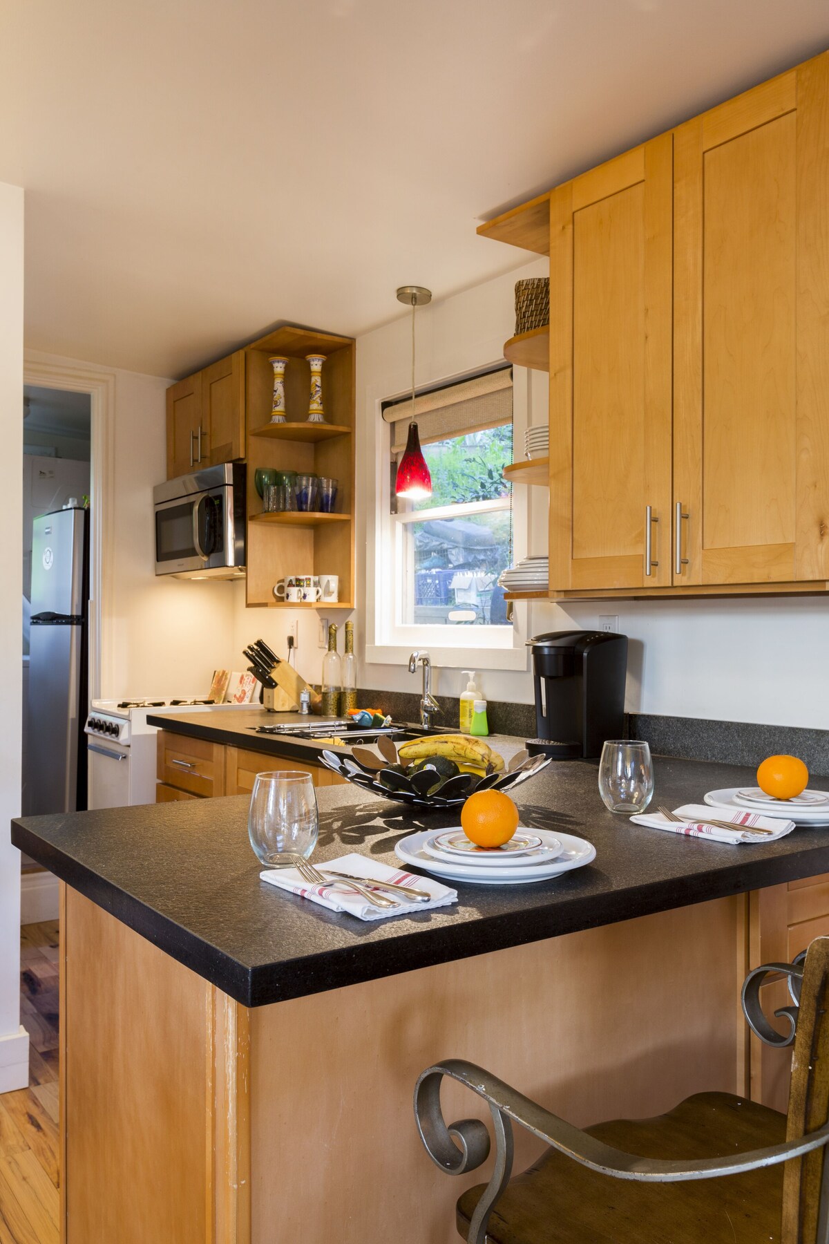Located on an acre of land with easy access from your car, you will have your very own outside area to enjoy sunny mornings or warm evenings. Guests also have access to the whole property with an outside seating area that has spectacular views of Mount Diablo. You will share the outside with our cats and dogs as well as our two goats!