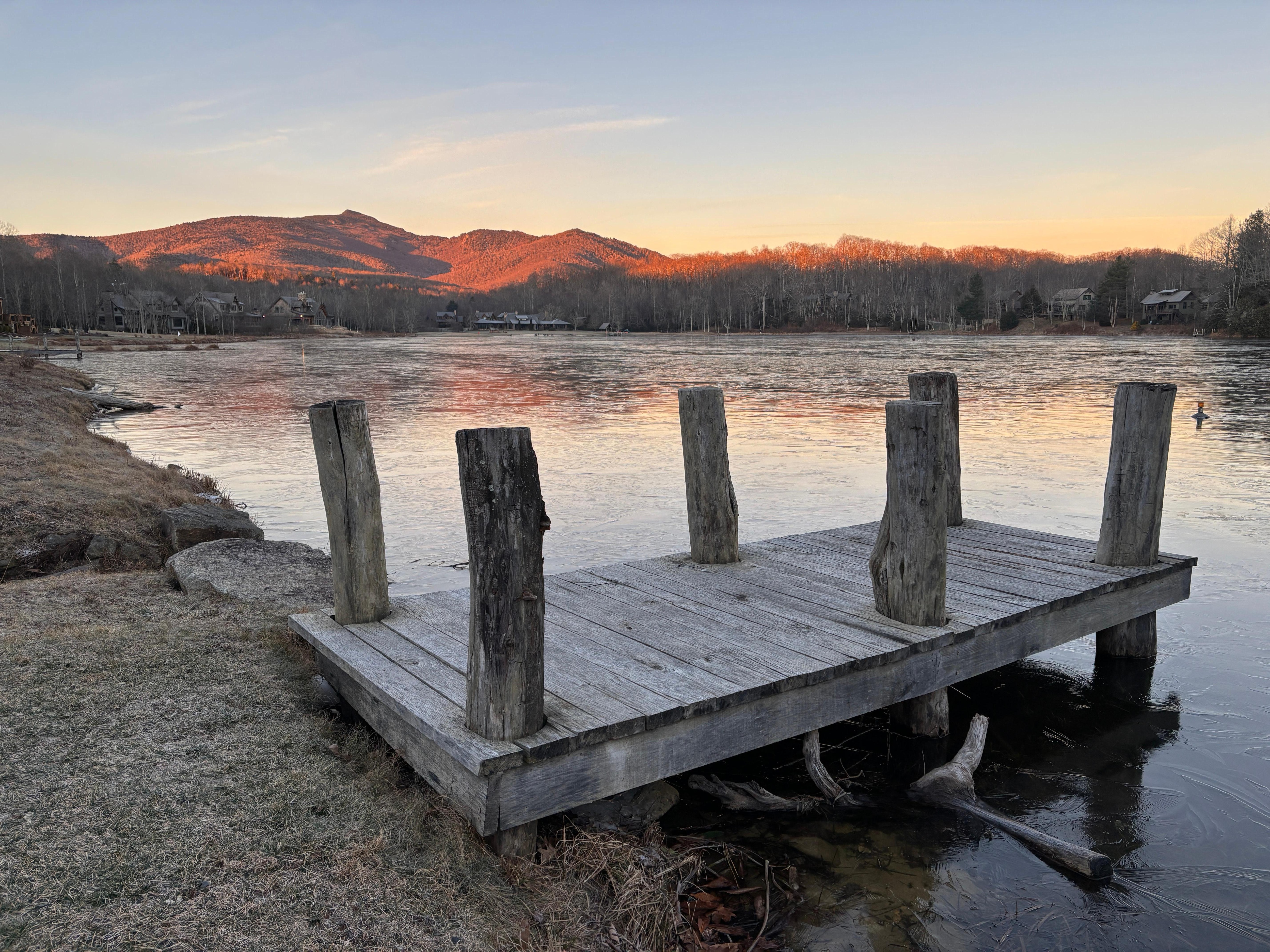 The back porch offers a lovely view of Grandfather Mountain where you can grill out or enjoy a beverage in the spacious hot tub. Roast marshmallows and share family memories around the rustic outdoor firepit. Fish or canoe off the home's private dock. Canoe is stored under the back deck.