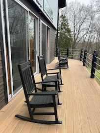 ★ Large upper deck patio with beautiful lake views and cozy outdoor seating.