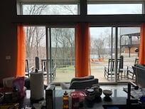 Well appointed kitchen, double sliding glass doors that look out onto the deck with rocking chairs. Perfect for enjoying the view of the lake and very peaceful.