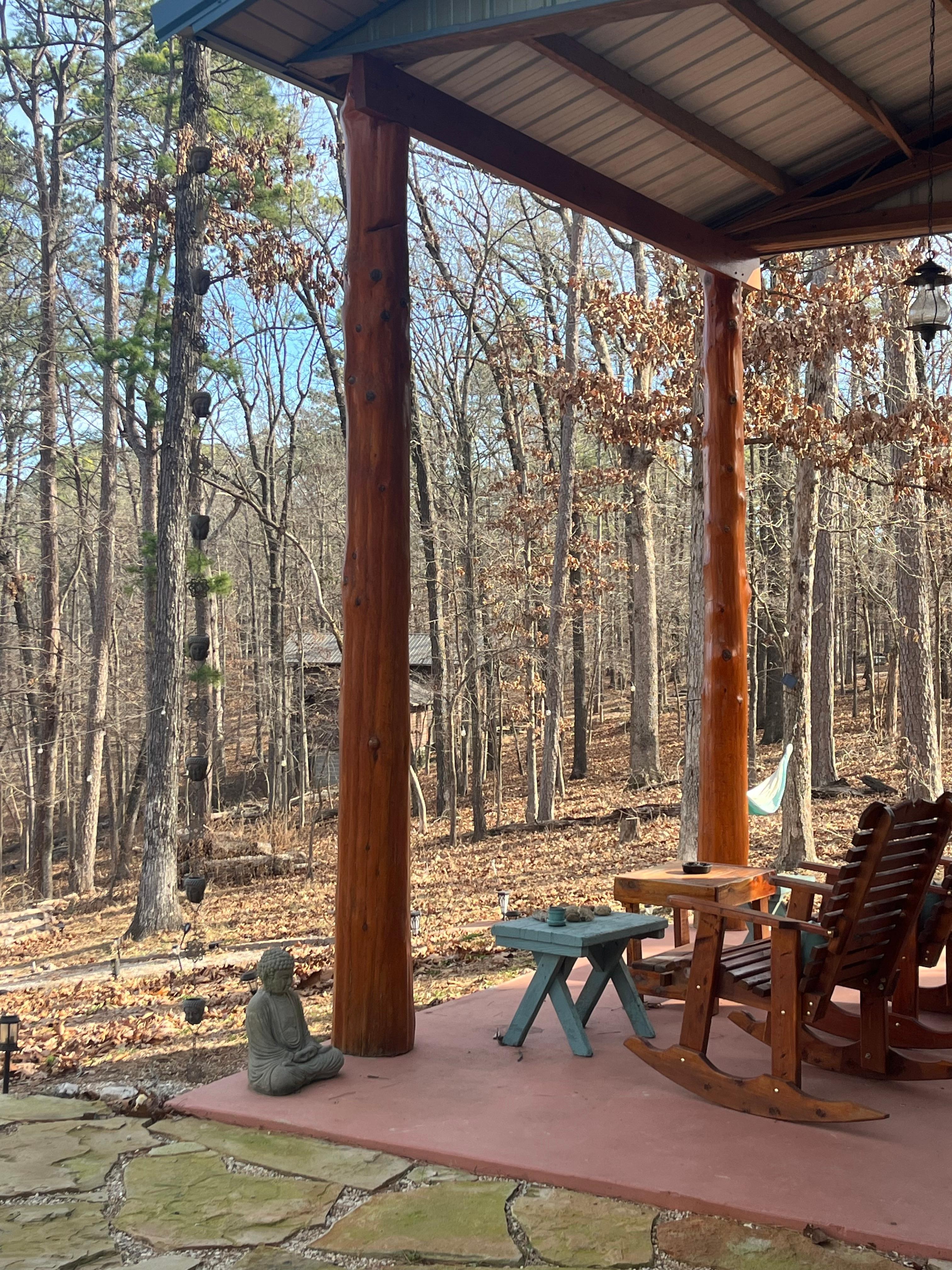 Sapphire Moonlight Wild Wanderer is located out by Beautiful Beaver lake well known for its Emerald green water with many waterfalls flowing from natural springs into the lake. Public lake access is just six minutes down the road via your vehicle. Cozy Fireplace, Tv, beautiful Views , being one of the most beautiful areas on Beaver Lake with many Gorgeous waterfalls flowing into the lake!! We provide 4 kayaks for you & with four luxury yoga mats for you to use In the upstairs lounge or overlooking the gorgeous Mountain View outside on the large exspansive scenic stone patio. No truck , suv, or 4wd required to get here! Can use a car . Just drive to the heart of downtown Eureka springs where you will find an abundance of amazing restaurants, shopping and many outdoors activities! Lots of places to float & swim nearby. If you love fun deco & music, this is the Mountain View cabin for you fully decorated with unique art from around the world, quirky, funny, cat paintings, vibrant musical rugs from Turkey, & a large Cozy lounge space upstairs with scenic window views. Gather Around the Cozy Fireplace & and enjoy the 50’ inch Roku smart tv !!The downstairs is surrounded by scenic glass doors . Enjoy drinks, tapas, coffee or tea at the Beautiful rough cut brazilian quartzite bar in artisan handmade cedar barstools overlooking the Mountain Views! Many ambient chandeliers throughout the cabin offer a unique design. Spacious kitchen & Brazilian bar area is perfect for food layouts while enjoying cooking on the patio that also has many seating areas to enjoy overlooking the mountains. Sunsets are amazing here as well as foggy views! The Mountain View here can’t be beat! Absolutely incredible! Extended stays welcome as we have a large custom built cedar walkin closet to accommodate your luggage . The 8 ft tall modern style privacy wall is gated at every entry offering that extra unique level of privacy for our guests so you can rest assured while inside of the front of the private large property.