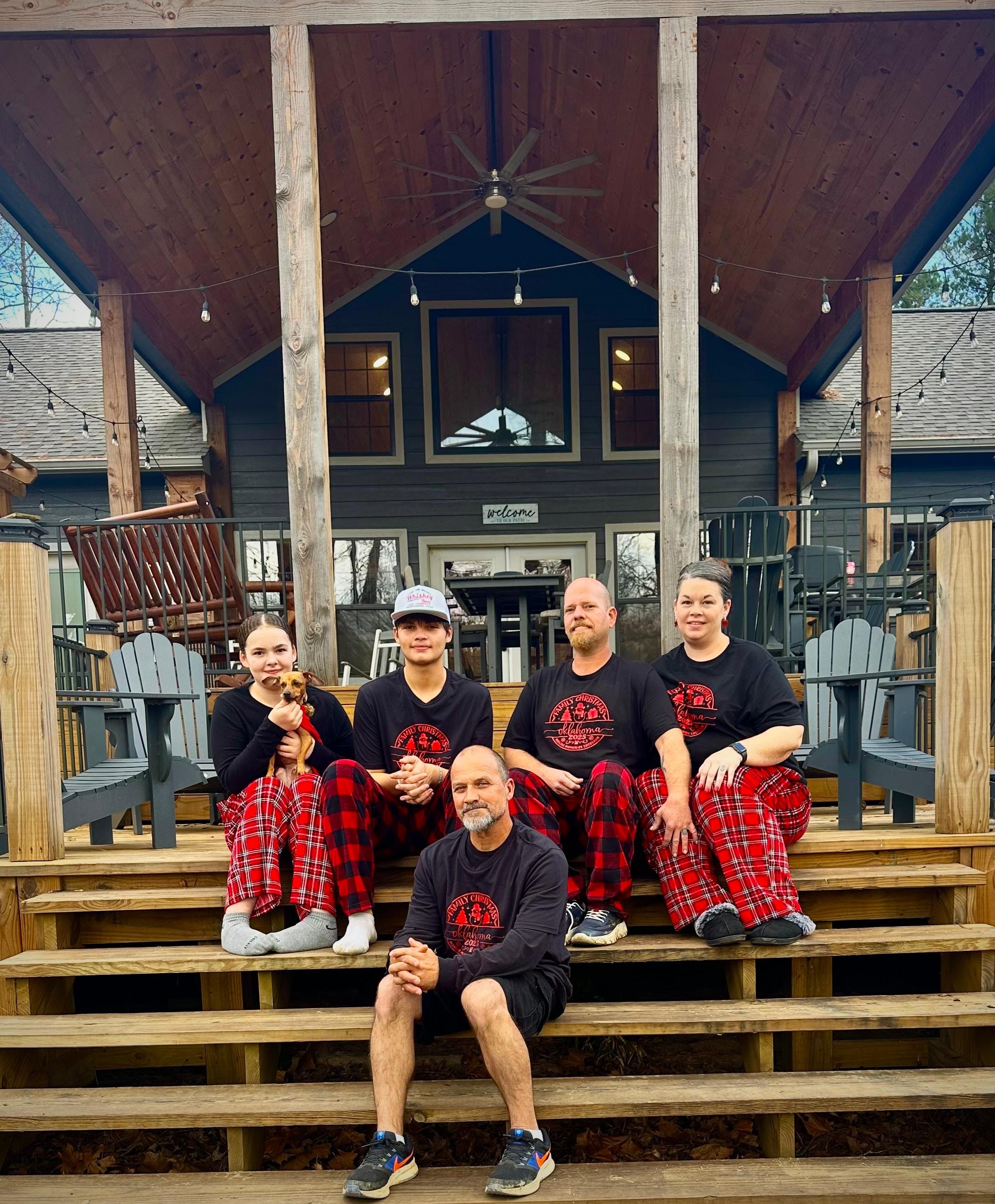 We are a family of 5 (three boys 22, 19 & 17). We enjoyed the spacious beautiful home with plenty of screens for people to be together or do their own thing. AC was ice cold perfect for a hot summer day. We kayaked up the river and floated down. Very refreshing sitting in the hot tub during the pouring rain. The spacious covered deck was beautiful as we Al the view of the river. The kitchen was fully stocked to make all of our meals at the cabin home. Thank you for making everything so perfect.