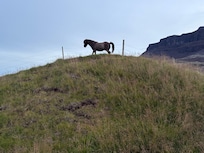 First and foremost, we purchased this property because of its beautiful mountain view. Furthermore, the land is optimal for raising sheep and horses. Nearby, there are a variety of hiking and horseback riding paths, which is preferable for our interests, for we enjoy hiking and horseback riding in the beautiful Icelandic nature. Especially enjoyable are the Northern Lights, for this area turned out to be a unique site for viewing them, during the fall and wintertime.