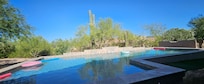 Cave Creek Desert Oasis, located five minutes from North Scottsdale, Arizona, boasts the same lavish amenities offered by our spa resort neighbors here in the desert—think huge rooms, multiple hot tubs, restaurant-worthy, "Climate Controlled" covered outdoor eating areas, one with a Japanese Teppanyaki grilling table, and available services like a personal chef, housekeeping, and a concierge to set up tours and expeditions—while also offering your group an opportunity to connect and rejuvenate in a comfortable, intimate setting in our amazing resort style heated pool, 2 large hot tubs, one extra large 2 person jetted tub in the primary suite, one of a kind back patio and front court yard, outside sunken fireplace all with views of the mountains and the colorful bursting sunsets the Scottsdale desert is so famous for!