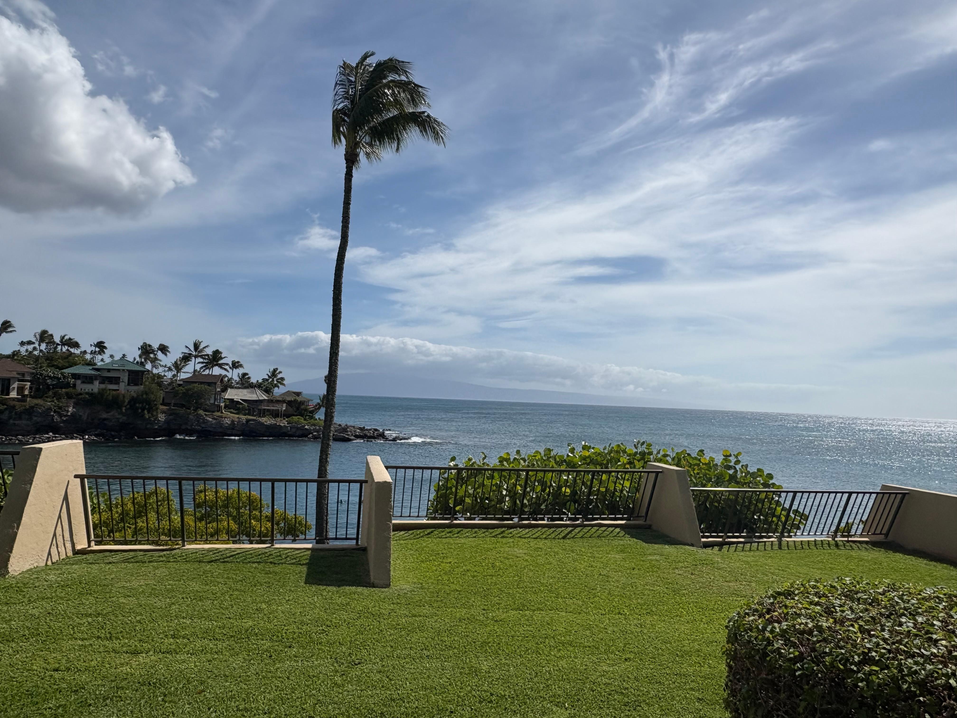 This ground level unit includes a spacious lanai that opens to soft green grass. The Oceanview lanai and green space are ideal for relaxing in the afterglow of stunning sunsets or for stargazing and watching the moonrise. Views of Molokai and Lanai are the backdrop for passing whales.