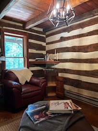 Take a break from everyday life, and escape to this unique and quiet retreat in the Catoctin Mountains. The traditional chink log cabin is located on 25 acres of mostly wooded terrain off Highway 17 near Wolfsville, Maryland, less than an hour and a half from D.C./Baltimore. The hosts live on the property, but the cabin is situated where it feels very private. The cabin faces the woods and there is a private trail down to the creek.