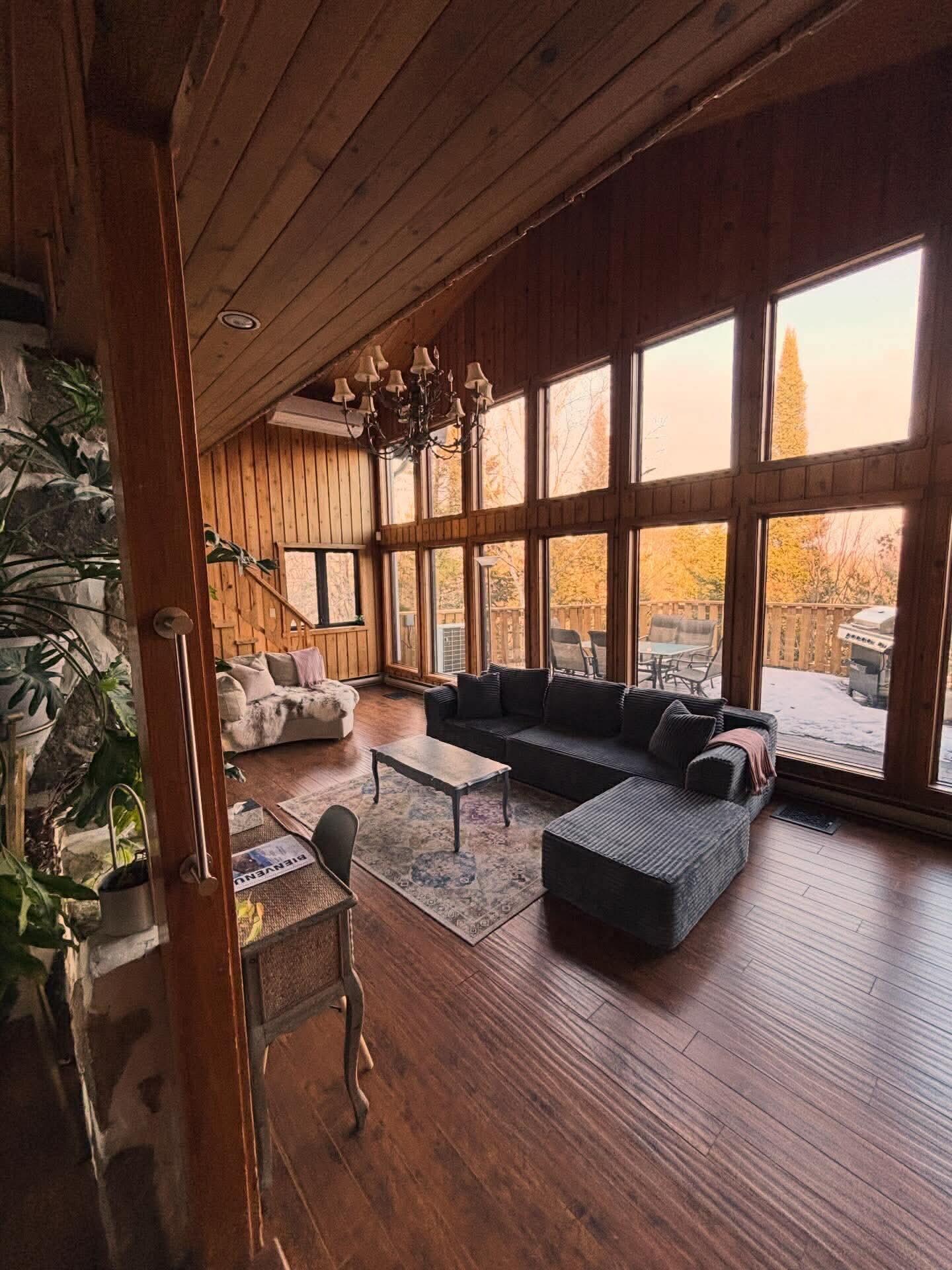 Venez découvrir ce havre de paix offrant une retraite en nature tout en étant près de tous les services et de vos activités favorites. Le chalet suisse est situé à 2 minutes du village de Sainte-Agathe ainsi que de plusieurs stations de ski et activités estivales, dont le fameux Ptit Train du Nord.