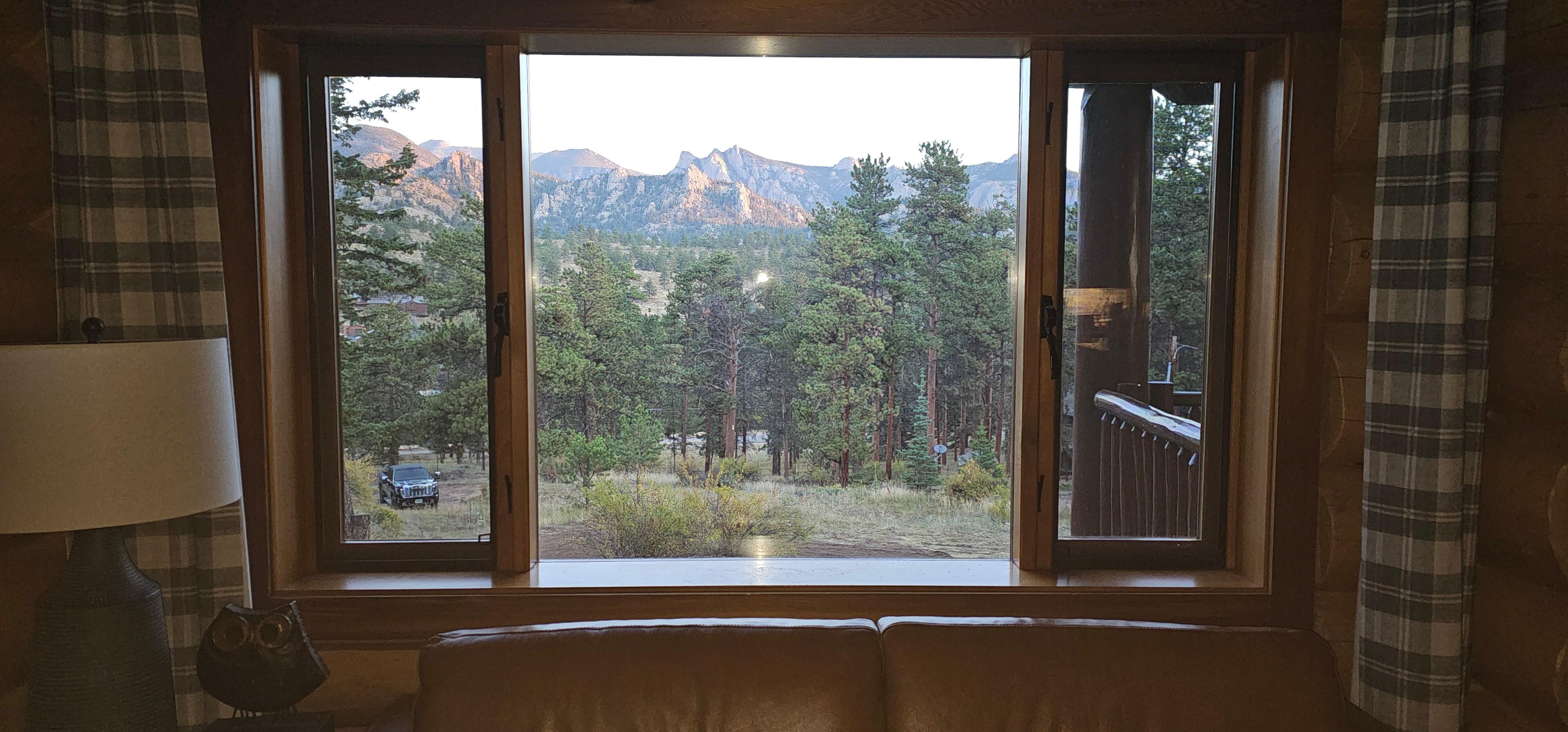Looking for the best views? Head off the main deck to a picnic table with killer views of Lumpy Ridge. Up for a few steps? Take the path up the mountain to the gazebo and enjoy the swing and the views. Or stop part way and relax on the hammock. The animals are prevalent in the yard~ at any given time you can find deer, elk, chipmunks, turkeys and rabbits. This is the mountains so please be cautious about bears in the area looking for easily accessible food and trash. Available for 30 day+ bookings due to short term rental restrictions in the area. Stay all or part of the 30 days at a great discount!