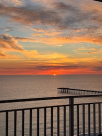 Genießen Sie mehr als 1900 Quadratmeter Luxus am Meer. Diese 10. Etage 3 Schlafzimmer und 3 Bäder Wohnung ist eine der wenigen Einheiten mit einem vollständigen Blick auf schöne Sonnenuntergänge und den Pier. Sowohl das Wohnzimmer als auch das Hauptschlafzimmer verfügen über Wand-zu-Wand-Fenster, die zum übergroßen Balkon führen. Die 2. Master-Suite verfügt über Kingsize-Bett, privates Vollbad und Balkon am Meer. Es ist ideal für Schwiegereltern oder für größere Gruppen. Sie können bei einem kühlen Getränk entspannen, während Sie die schönsten Sonnenuntergänge von allen Schlafzimmern, Küche, Ess- / Wohnzimmer und zwei Balkonen beobachten.