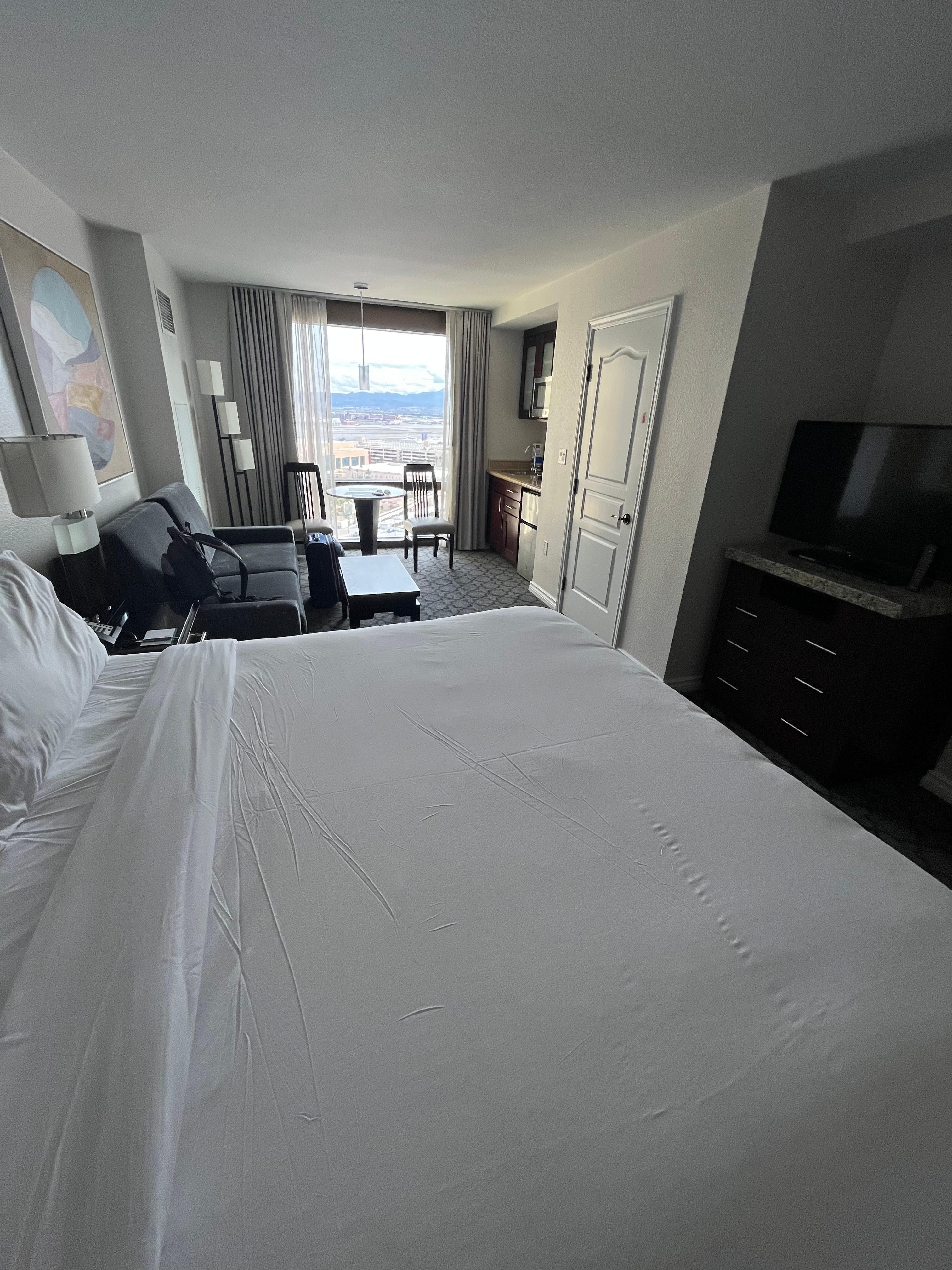 If you’re staying in one of the cozy studio rooms, you’ll enjoy thoughtful amenities like a king bed, pull-out sofa, and kitchenette—perfect for quick snacks or family meals. And with the stunning Las Vegas skyline as your backdrop, it’s the perfect place to unwind after a day of adventure.
