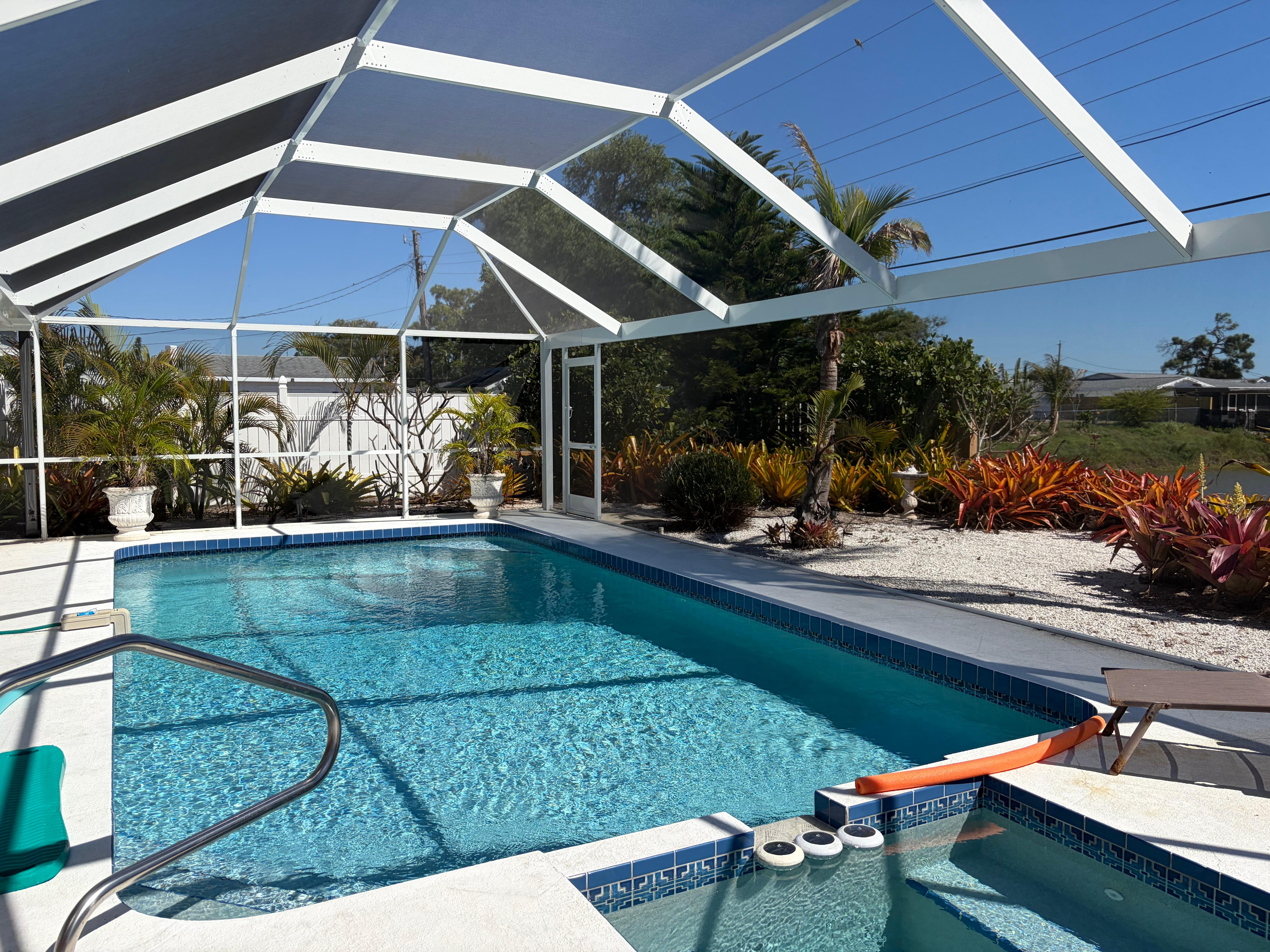 We enjoyed exploring this part of Englewood especially the Lemon Bay Neighborhood. Mostly we enjoyed swimming and sitting by the heated pool reading surrounded by the lush tropical gardens. There were plenty of pool toys. We cooked most of our meals in the house since Publix was an easy walk.