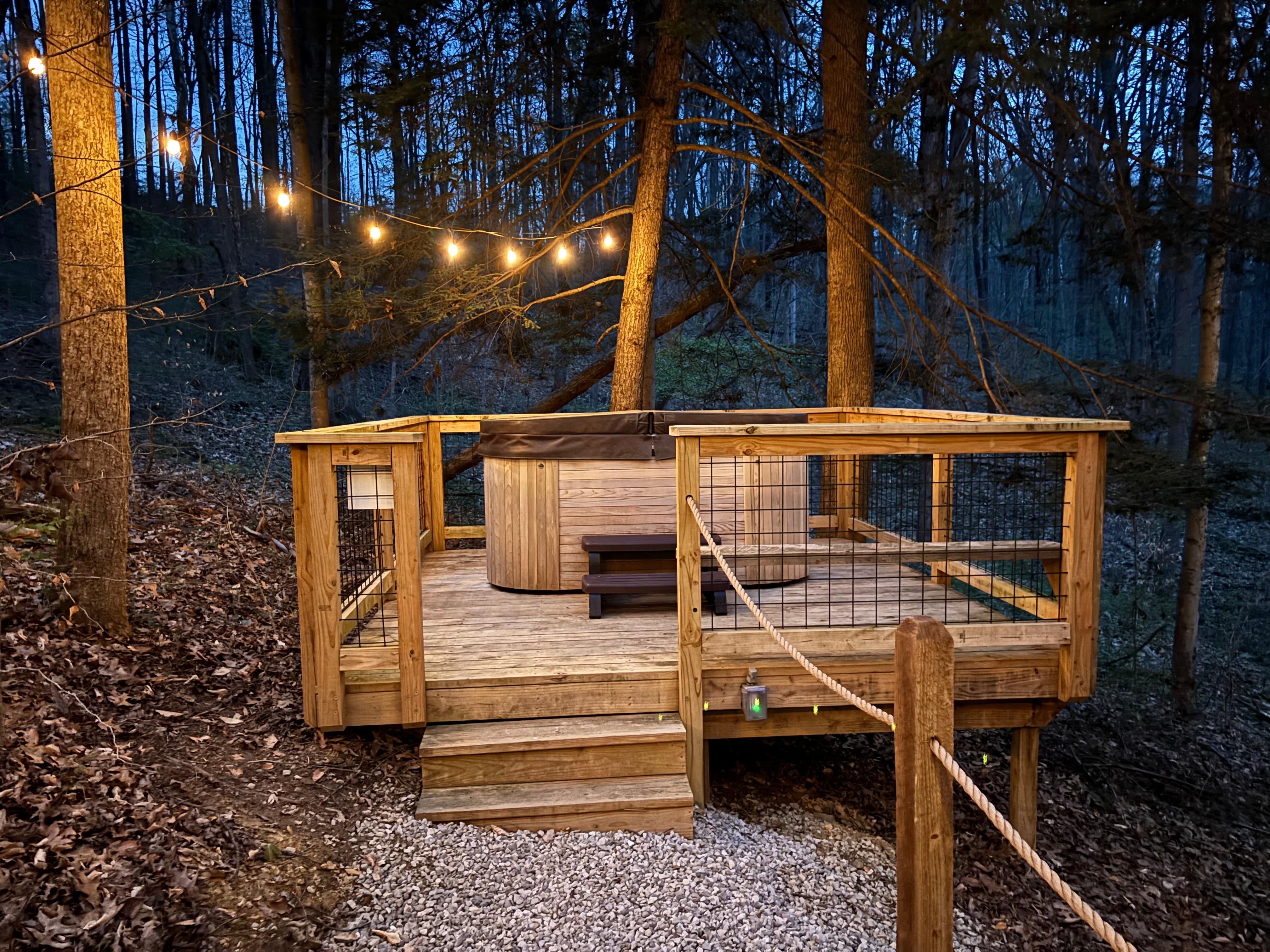 Authentic treehouse cabins in the scenic Hocking Hills region in SE Ohio. Located on 15 private acres, minutes from Hocking Hills State Park and popular attractions. If you're looking for a unique and memorable reTREET for your family, then look no further than our original treehouse, The Tulip.