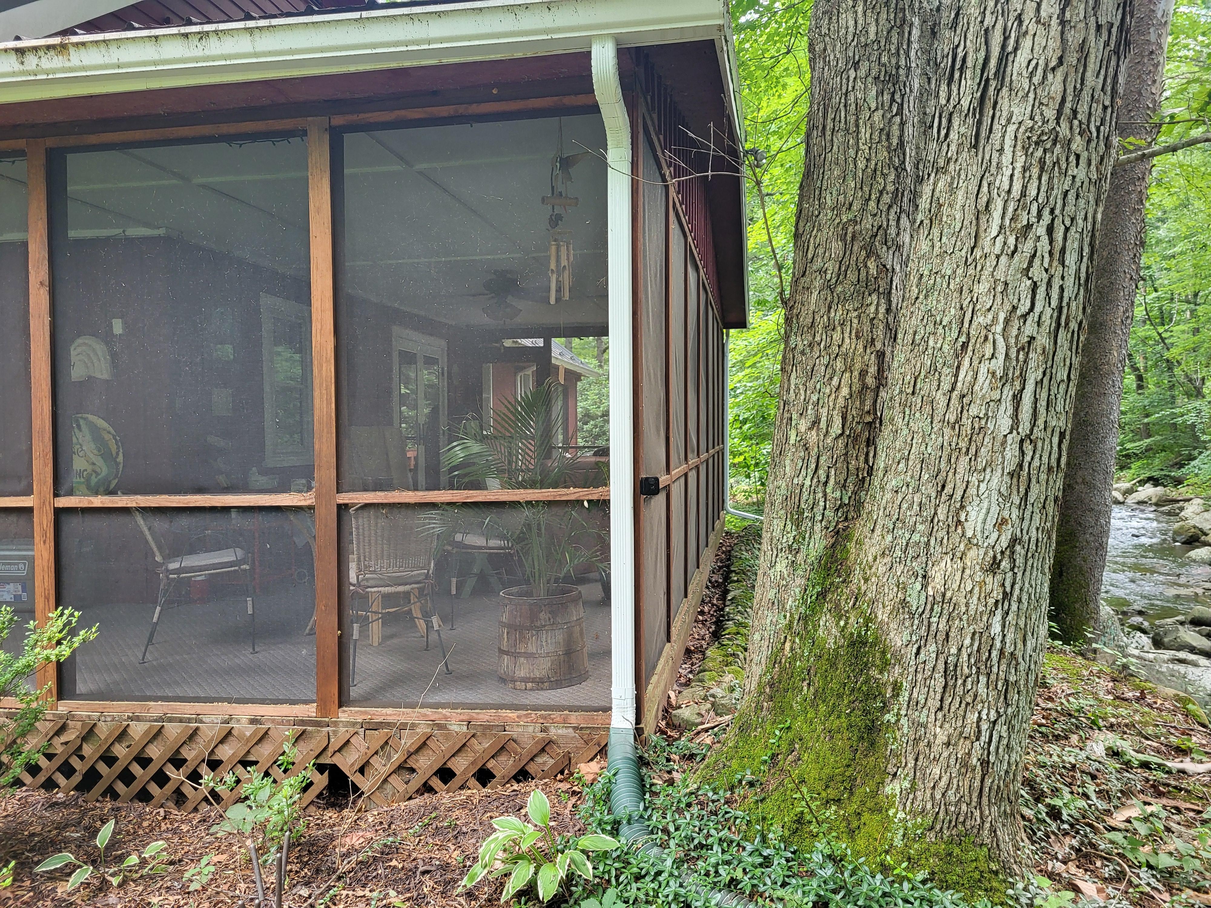Entspannen Sie sich und genießen Sie die große Veranda mit Blick auf den malerischen Forellenlauf. Lesen Sie ein Buch, machen Sie ein Nickerchen auf einer Liege oder sitzen Sie herum und spielen Sie Karten am Tisch.