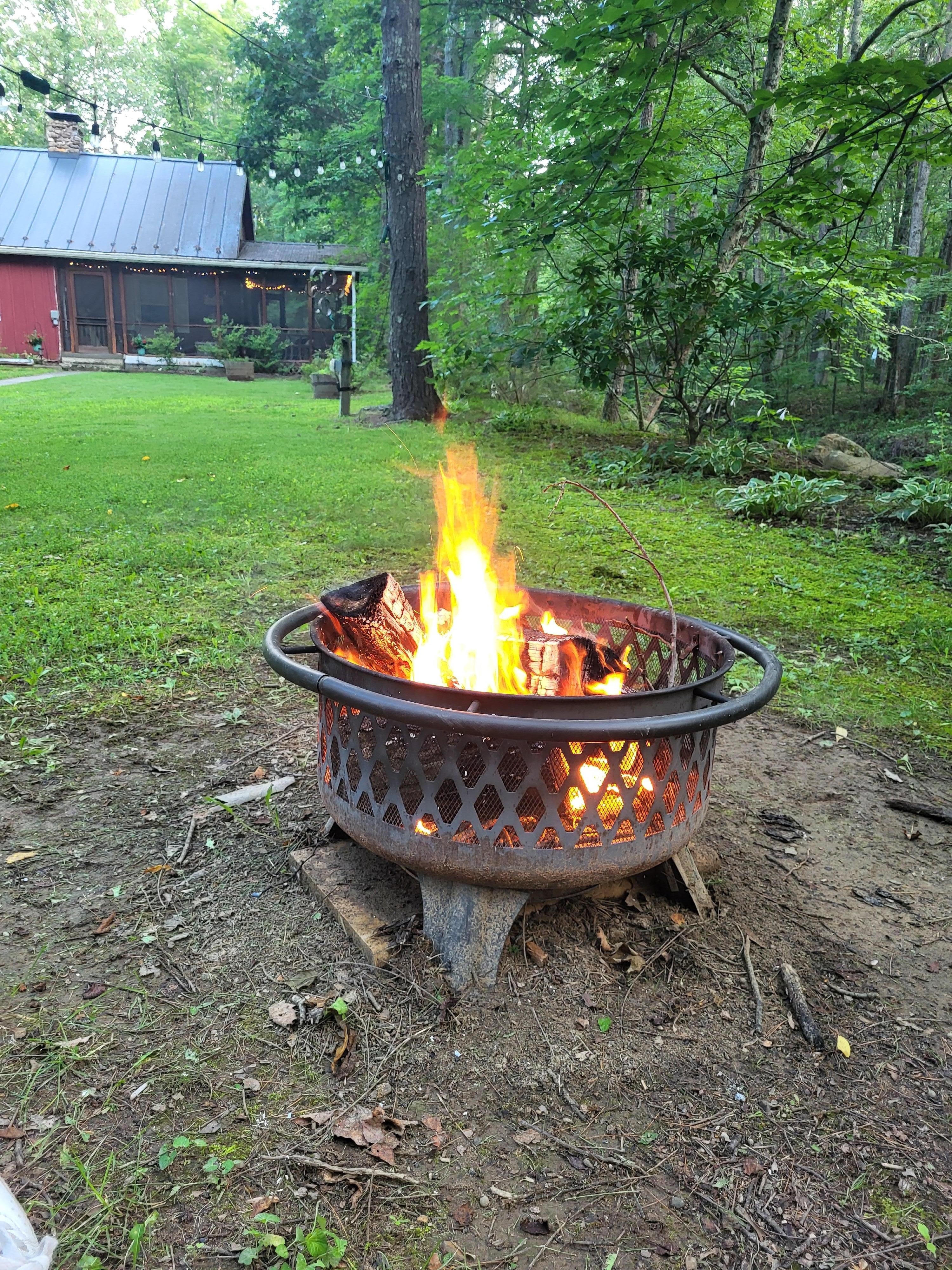 Draußen finden Sie eine Feuerstelle, einen Holzkohlegrill im State Park-Stil. Picknicktisch und viel Platz zum Spielen von Häkel- oder Outdoor-Spielen.