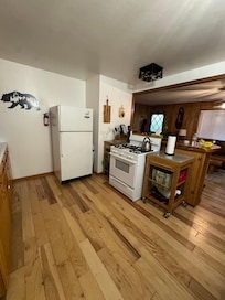 For your convenience, the cabin is equipped with a washer and dryer, making it easy to keep up with laundry during your stay. Step outside to enjoy the fully fenced yard, where you can relax on the front deck or unwind in the backyard, soaking in the stunning natural surroundings. Between the trees in the backyard, you’ll find a hammock—a perfect spot to kick back, read a book, or simply take in the peaceful environment.