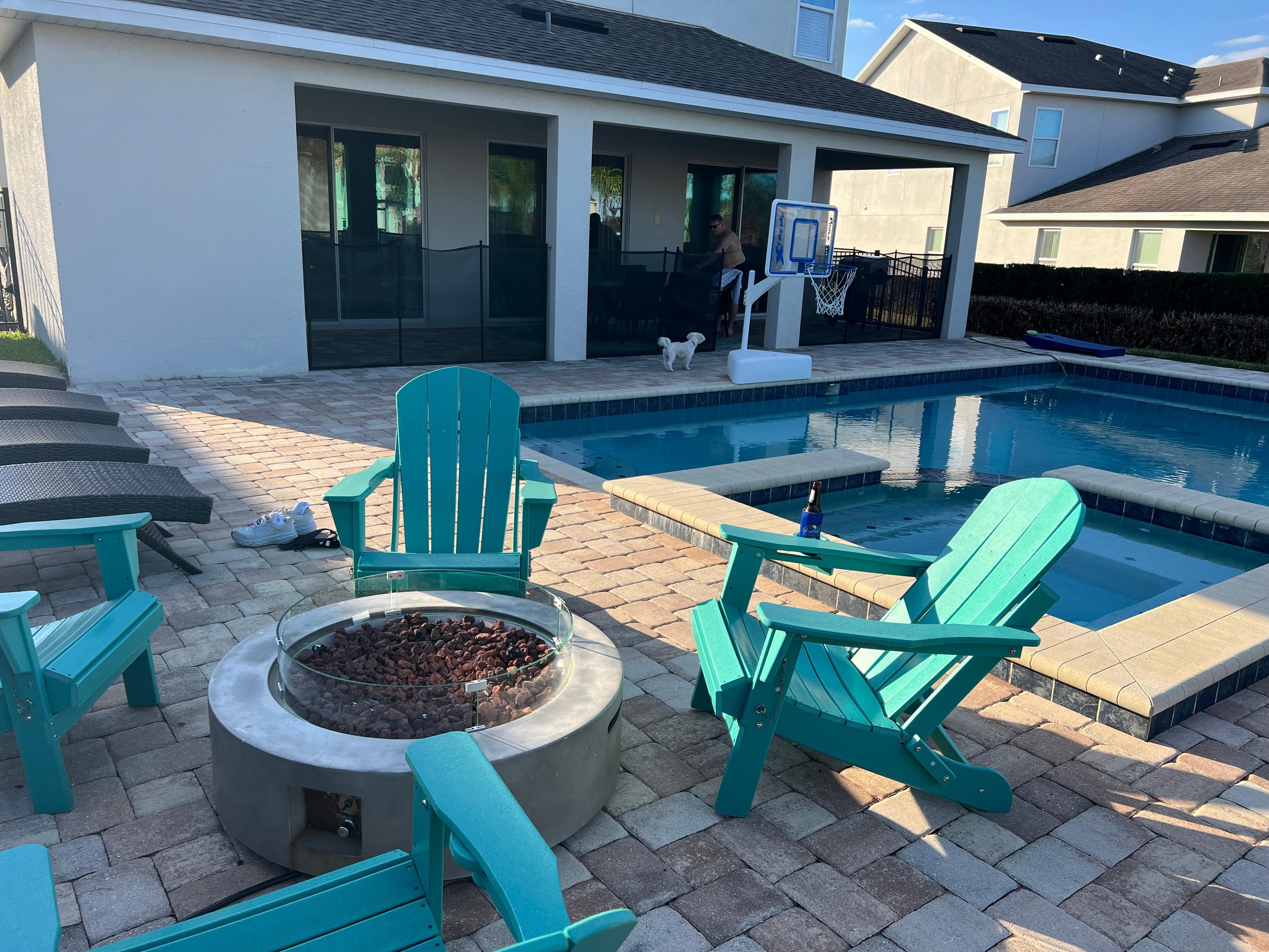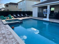 Enjoy a private home theater with surround sound and seating for five. Outdoors, relax in your private heated pool and spa with a safety net, in-pool loungers, outdoor dining area, BBQ grill, and fire pit. Pool heating is available for an additional daily fee.