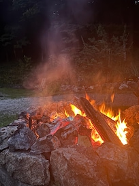 Entspannen Sie im Freien an der Feuerstelle oder ziehen Sie sich in eines der Schlafzimmer zurück, um Ruhe und Komfort zu genießen.