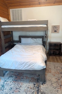 The cabin is designed with families and groups in mind, featuring a comfortable sofa bed in the living area for extra sleeping space. For your convenience, an in-unit washer and dryer are available, allowing you to pack light and keep your belongings fresh throughout your stay.