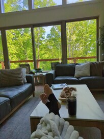 What truly sets it apart? The remarkable views overlooking world-class mountain bike trails, where you can watch riders carve through the landscape or soak in the beauty of nature all year round. Whether you're here to ride, explore, or just unwind, this space is designed to be your personal sanctuary.