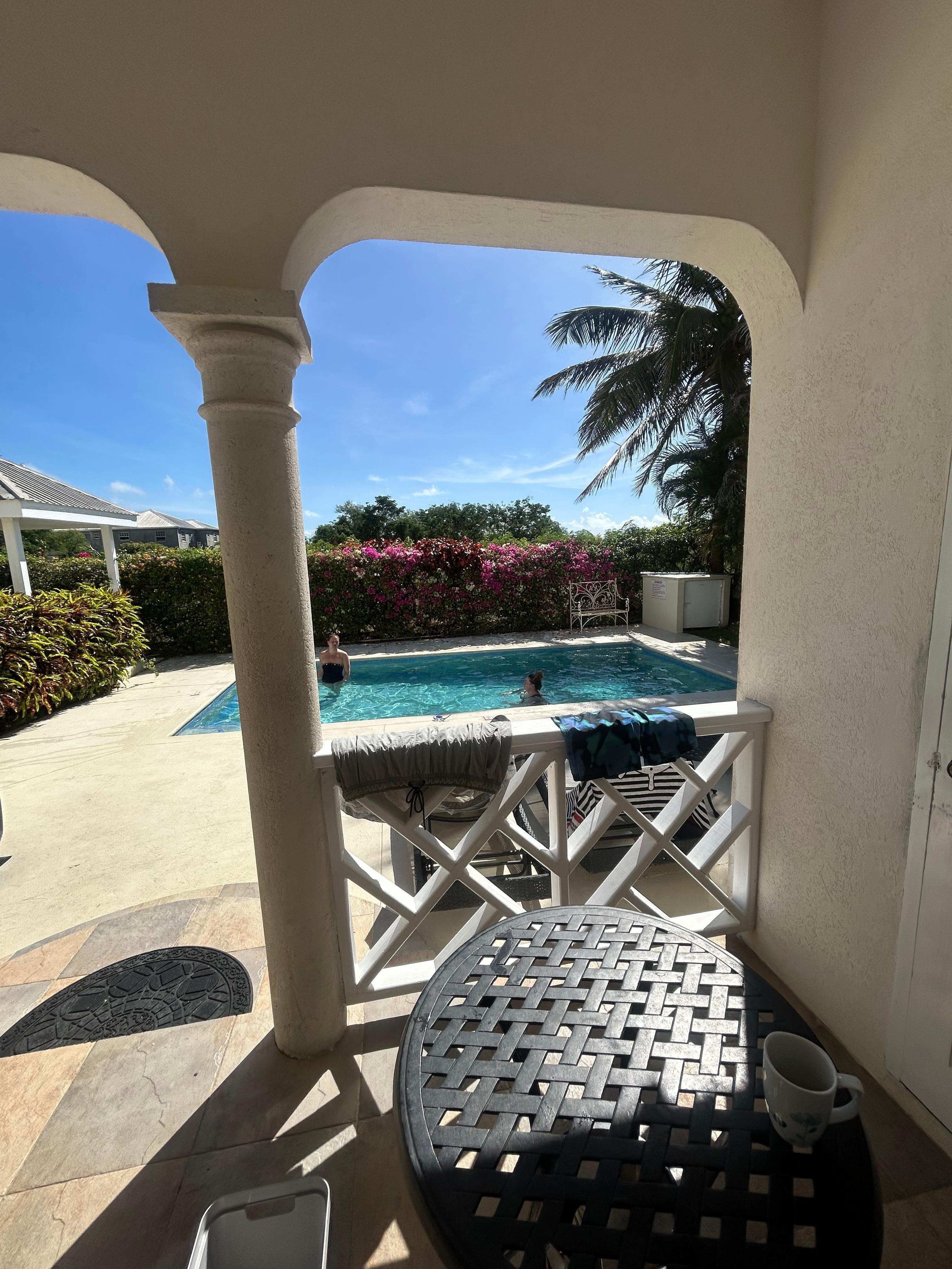 3 Schlafzimmer Luxuriöse Familienferienvilla mit großem privatem Pool an der Südküste von Beautiful Barbados. Auf der Spitze eines Hügels gelegen, bietet es eine angenehme kühle Brise, die praktisch keine Moskitos beseitigt. 2 Kingsize-Schlafzimmer und 1 Zweibettzimmer, alle mit Klimaanlage ausgestattet. Komplett ausgestattet mit privatem Pool, WIFI, Garage, LCD-TV, Safe, Kabel-TV, DVD-Player, Laserdrucker, 3 geräumige, klimatisierte Schlafzimmer, Master mit eigenem Bad und begehbarem Kleiderschrank, Deckenventilatoren im gesamten Bereich. Grill, Pavillon mit Ventilator und Lichter. Voll ausgestattete Küche mit Kühlschrank / Gefrierschrank / Eismaschine und gefiltertem Trinkwasser, Herd mit Backofen, Geschirrspüler, Mikrowelle und Waschmaschine. 10 Minuten Fahrt nach Crane Beach - zum drittbesten Strand der Welt gewählt, 5 Minuten zum nächsten Strand und 5 Minuten zur berühmten Stadt Oistins. Golfplätze und Flughafen in der Nähe. Ideal romantisches Wochenende, Flitterwochen oder Familienurlaub. Willkommenspaket mit Speck, Eiern, Milch, Brot, Saft, Butter, Käse, Rum, Cola und Bier. Wöchentliche Zimmerreinigung inklusive und zusätzlich verfügbar.