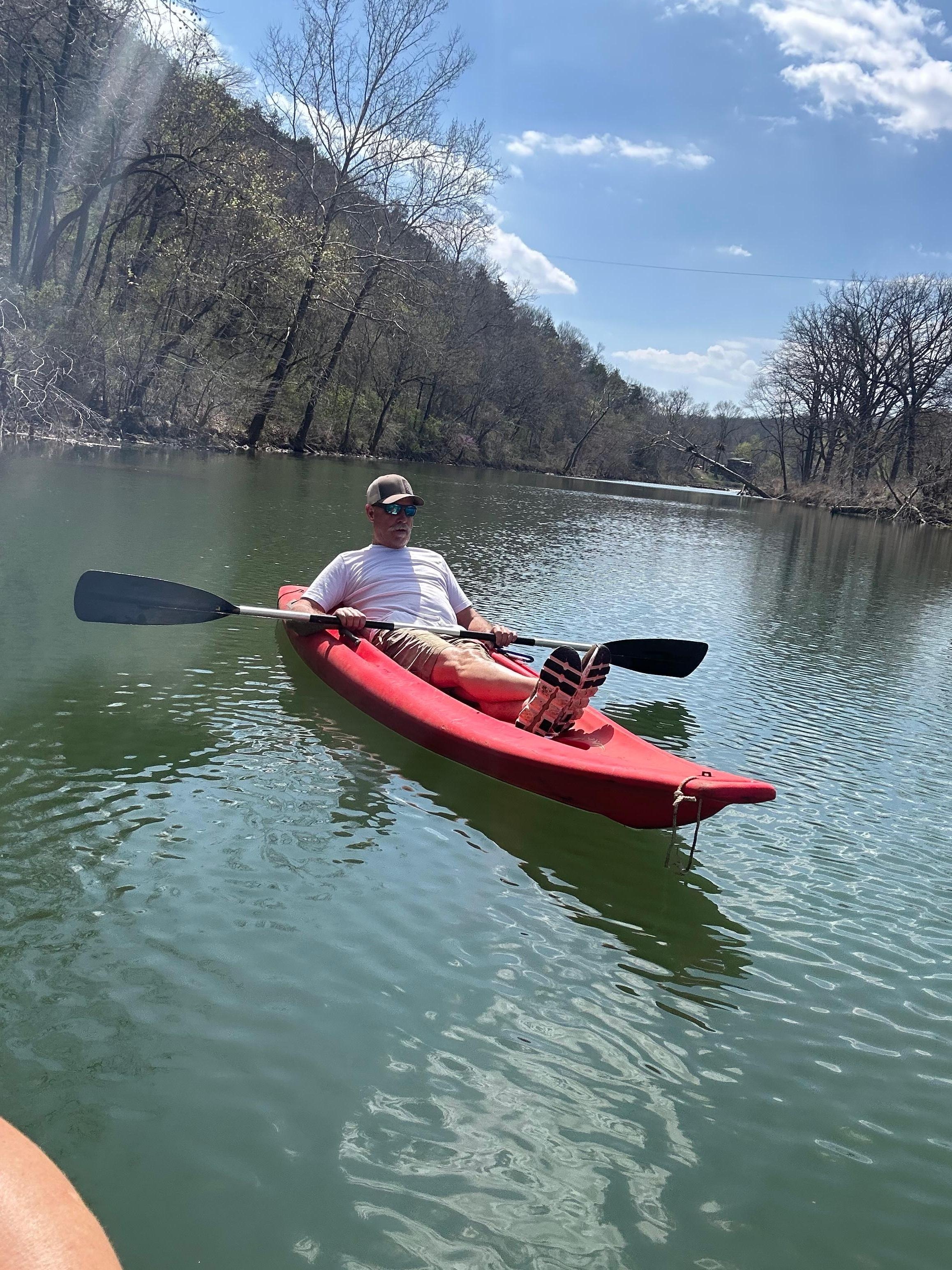 The cabin at Miramichee Falls was so beautiful. We loved the old stone walls and floor. Such a beautiful peaceful place to spend relaxing by the creek. (The burn ban prevented us from having a fire BUT we were still able to really enjoy our time away on deck and swing by the creek). Super comfy bed too!! The kitchen had everything we needed. And we loved the big full fridge. We floated the South Fork of the Spring River. Rocky’s crew at Spring River Camp & Canoe picked us up right at our cabin!!!! They drove us up river about 5 miles so we could float back to our cabin. THAT WAS SO AWESOME!!! Call them for your kayaking experience!! The South Fork was completely beautiful. The most fun river I’ve ever kayaked - rocks to traverse around, 3-4 little waterfalls to go down, Ford bridges to go under, and big slow-flowing lazy water to sit back and relax. We had an awesome time!! We highly recommend Lynn & Jay’s stone cabins at Miramichee Falls AND the Spring River Camp & Canoe!!