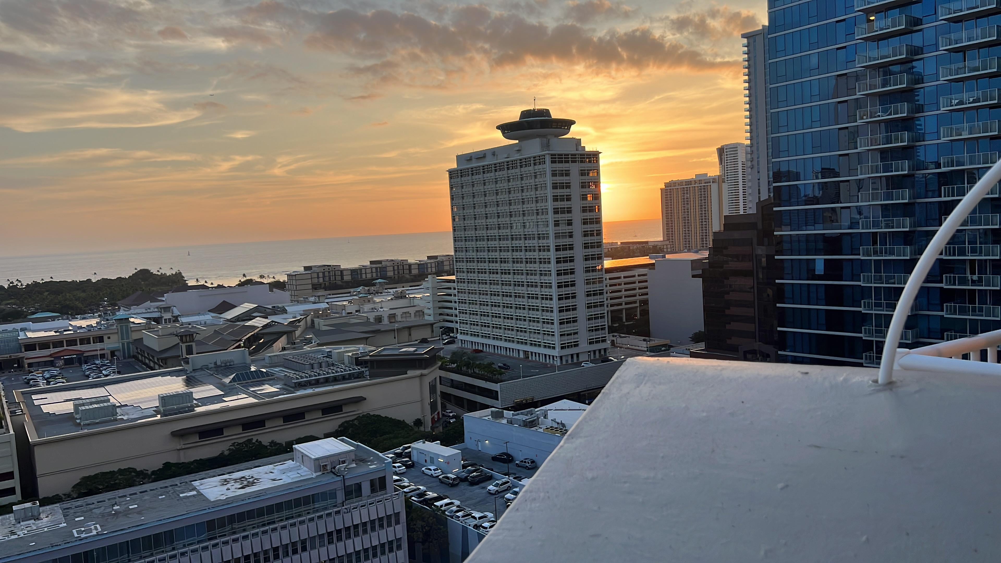 With over 900 sq ft of thoughtfully designed space, the Jetsons Sunset Penthouse feels more like three studio apartments sharing a stunning, pie-shaped layout with nearly 400 sq ft of wraparound lanai. Originally part of a swanky urban hotel, it still holds that iconic “Old Hawai‘i” charm — now paired with sleek, modern upgrades.