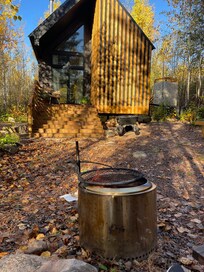 When the seasons allow, guests can use an outdoor shower filled with water heated on the stove. In winter there is currently NO SHOWER option at the burrow. You can shower at the YMCA or Municipal Campground in Grand Marais.