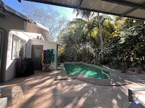 Welcome to Casa Coqui, a spacious 3 bedroom 2 bathroom home with large pool set in a lush tropical garden just a 5 minute walk to the beach. Great outdoor space with private pool, covered outdoor living/dining area. The comfortable home has a large open concept living/dining and fully equipped kitchen. Centrally located in the Surfside community, it is just a quick walk to the fabulous beach, restaurants, bars and shops. There is parking inside the property for 2 cars. The bedrooms feature a king, queen, and full bed, ensuring a comfortable stay for all guests. With amenities like WiFi, AC, and a washing machine/dryer, your vacation will be both enjoyable and stress-free. The two bathrooms are equipped with showers and hair dryers for added convenience. Our place is equipped for both long or short stays to make your holiday one to remember. The back yard is a true oasis to relax and enjoy nature.
