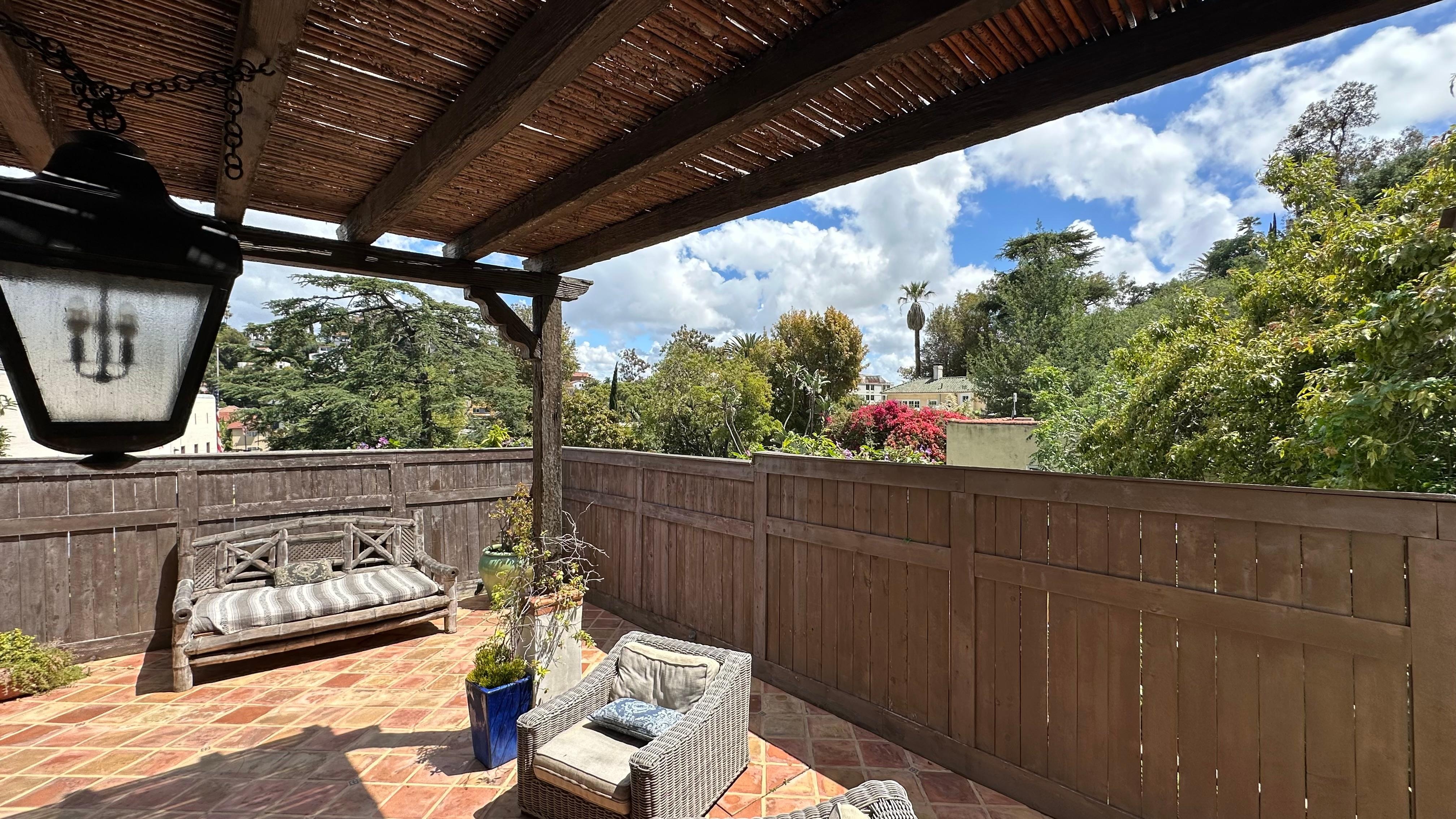 The spacious loft like living room and dinning room are surrounded by windows and views of the hillside and greenery. Large bathroom with terrecota floors and a large cooks kitchen with stainless appliances. French doors throughout with plenty of light and 3 private patios to enjoy a glass of wine and enjoy the views. Perfect for enjoying the evening with a glass of wine. Truly a hidden gem that sits behind gates and yet walking distance to all of the hottest spots in LA. This house has never been on the rental market and has recently been renovated to its original charm.Stay in the heart of the Hollywood Hills in this private secluded Villa duplex which sits behind gates and extremely private. Just a stone's throw away from the Hollywood Bowl, Hollywood Walk of Fame, Chinese and Dolby theaters, The magic Castle, and yet you'll feel a world away. This quiet historic neighborhood offers a beautiful walk through history. Once the neighborhood of Marilyn Monroe, Frank Sinatra, Richard Gere , amongst many many others. Mountain views, the Florentine Bell Tower, spanish homes carved into the hillside makes this neighborhood a true gem for history and authenticity into something replicated out of southern Italy. This Designer villa was just renovated to the ten's with all of the bells and whistles making it a truly authentic experience for your stay. Situated at the end of a cul-de-sac and extreme secluded away from the hustle and bustle, yet walking distance to all of the hottest restaurants and night clubs hollywood has to offer.