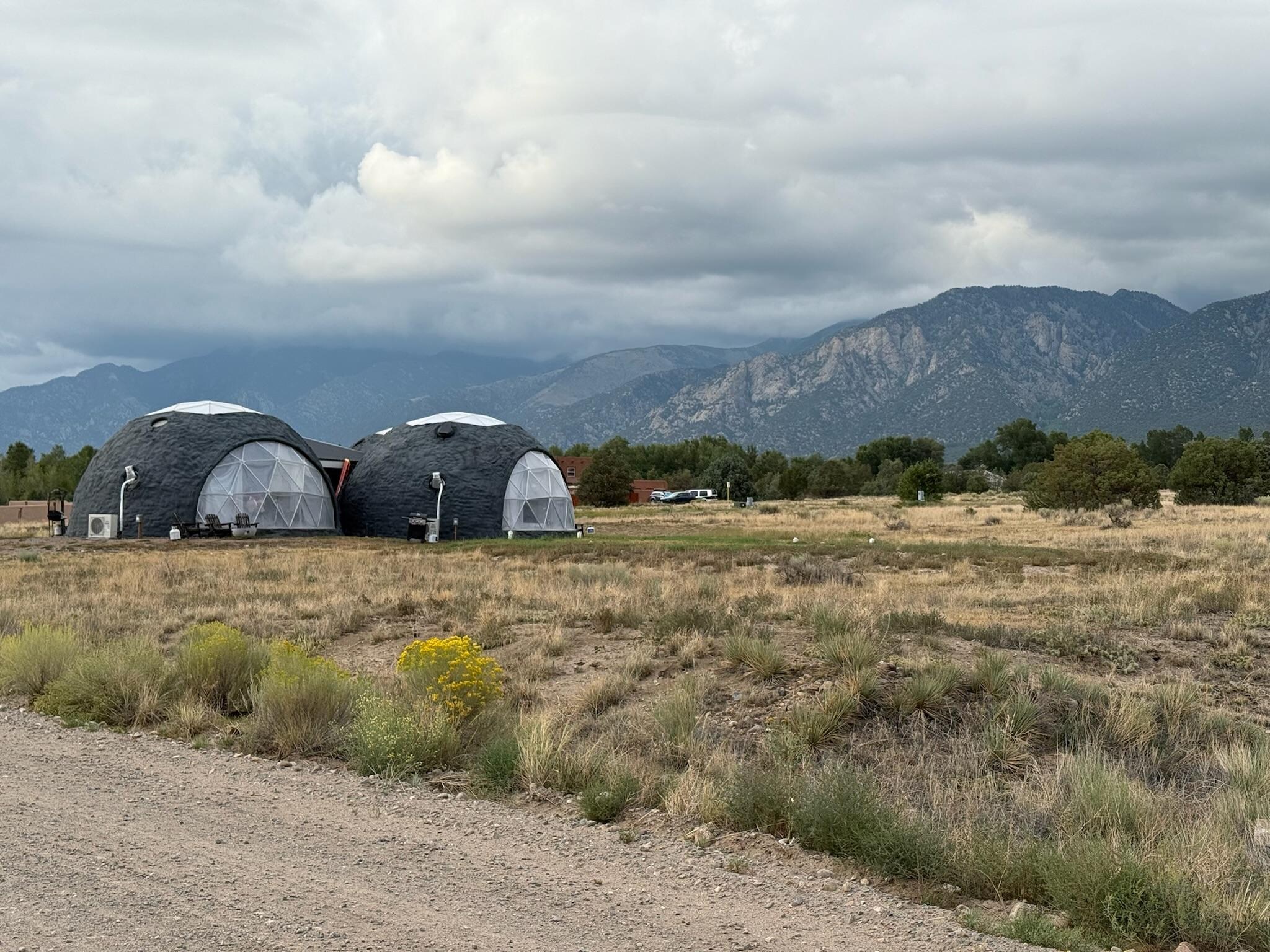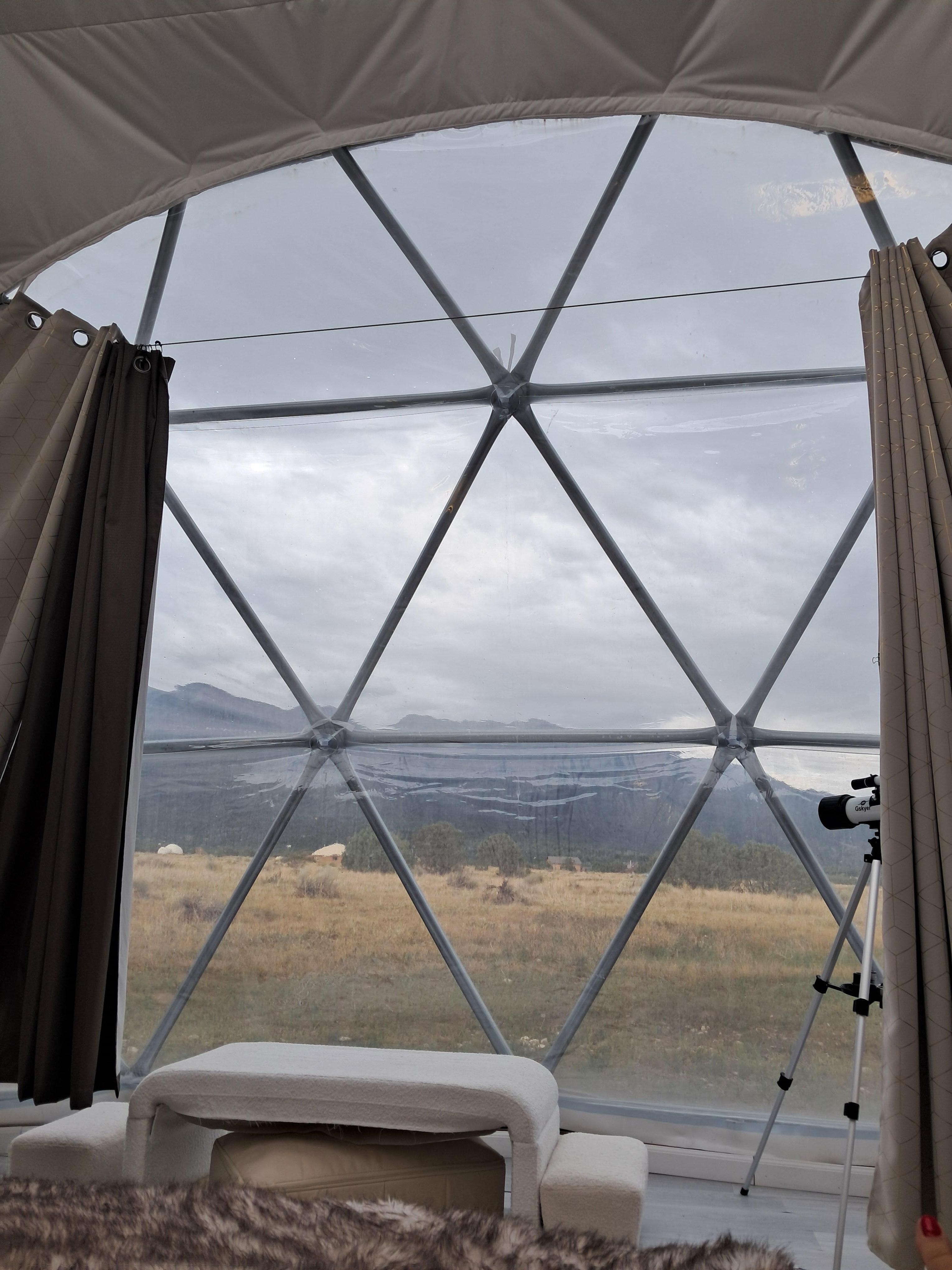This was our first time staying in a dome as a family of four. The original dome was not available at time of check-in due to a plumbing issue and Dina communicated promptly to let us know she was switching us to one of the other domes. It was overall nice and clean but with some wear and tear with missing bathroom hooks, wobbly table and unsecured closet chest. The other things to point out is the bathroom is so small, my 5’4” frame could barely fit, same with the shower. We noted that if you were a bigger human this would definitely not be suitable for you. Also there is no ventilation in the bathroom so if you do a smelly #2 it fills the dome with that scent. Overall minor for us but some things to note. We did enjoy the remoteness but if you are planning on doing much outside of the dome, plan on a 30-60 min drive in either direction for main attractions. We did go into Crestone and shopped at cloud market. It would be sufficent for our needs but note that it is similar to a small local Whole Foods. We would come back to this area and stay at the domes again as it is beautiful location that met our needs.
