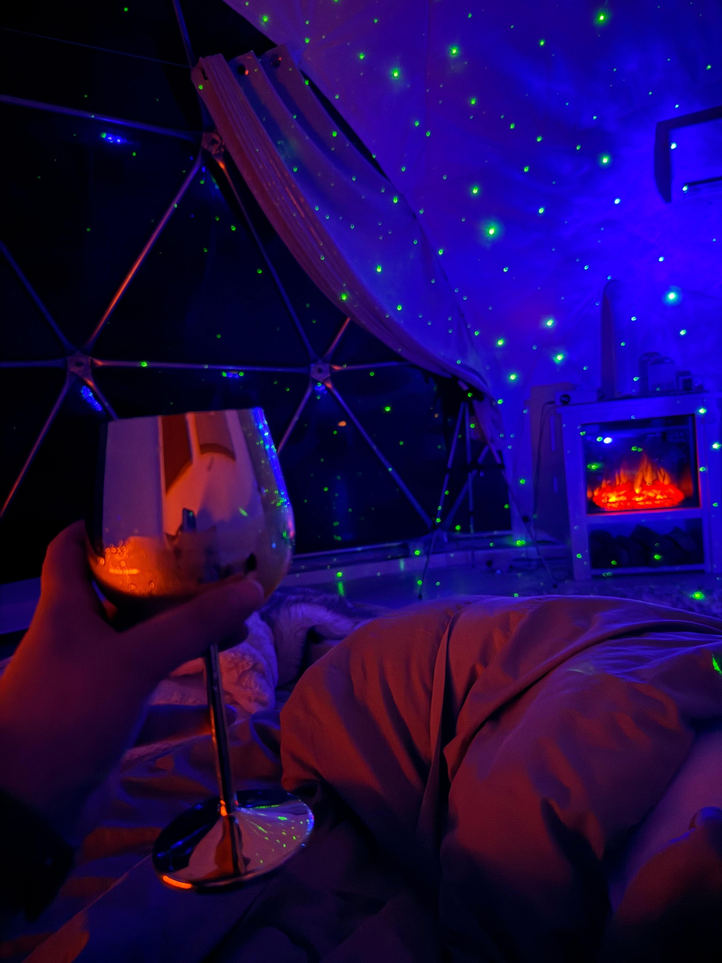 During the winter months, the dome can get quite cool. To ensure your comfort, we provide two electric fireplaces, luxury linens & throw blankets. Feel free to use the outdoor fireplace as well for a cozy evening under the stars.