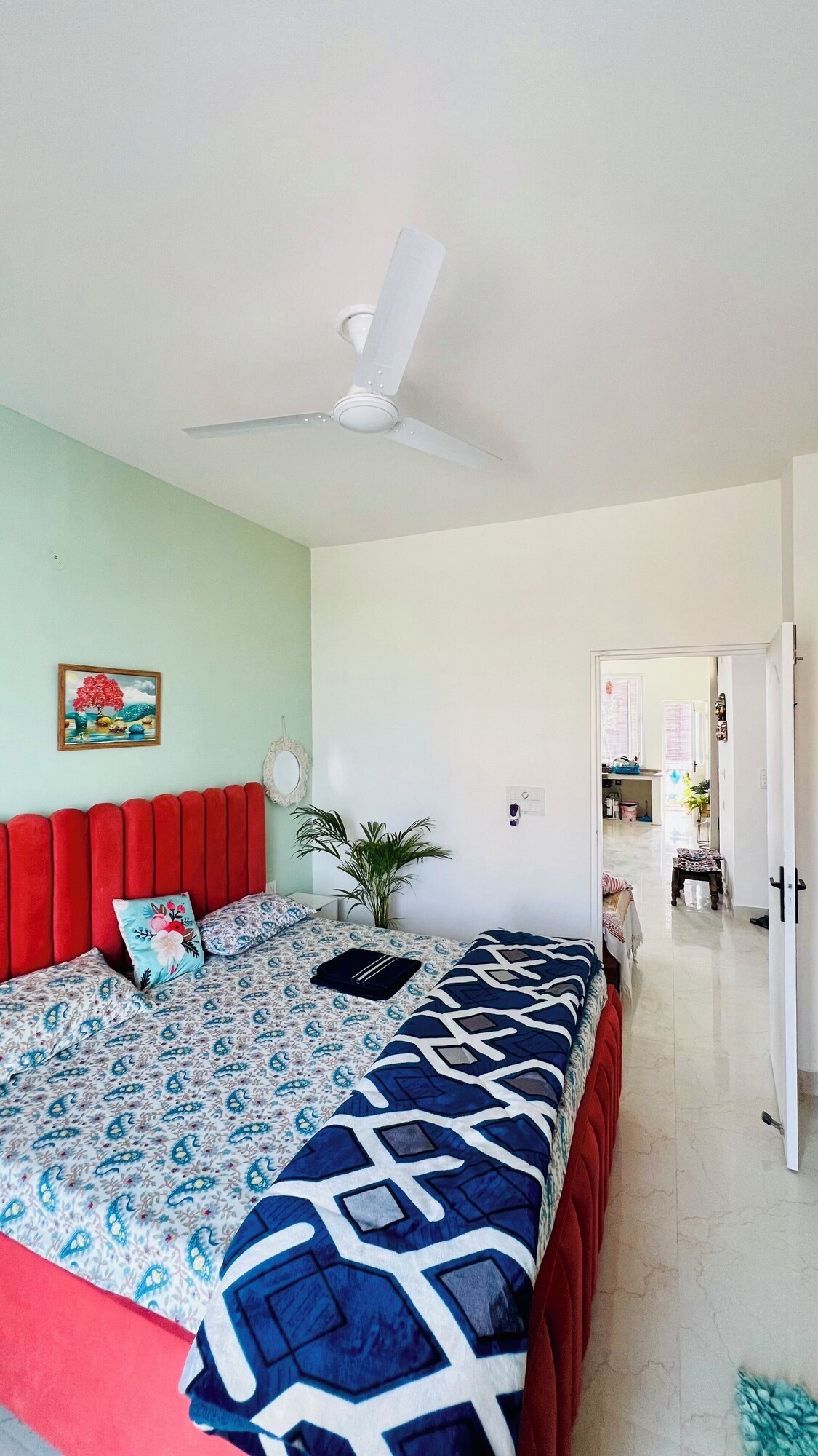 Beautiful apartment with closed society .Best for families and couples. It’s 3 Bed room property with all facilities including a king and queen bed with extra single bed in the living area along with fully functional kitchen and under synch RO/Washing Machine for your need.Groceries available nearby You will not miss your home stilt parking.