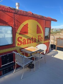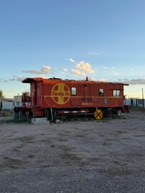 The ‘Midnight Train to Marfa’ is a Vintage 1948 Santa Fe Caboose nestled on two large lots facing fantastic ranch views and the romantic stir of the Railroad train.