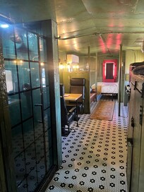 This train car is a unique space for everyone to enjoy! The space is small and privacy is limited when it comes to showering. It’s the real cowboy experience you might become quite smitten with.