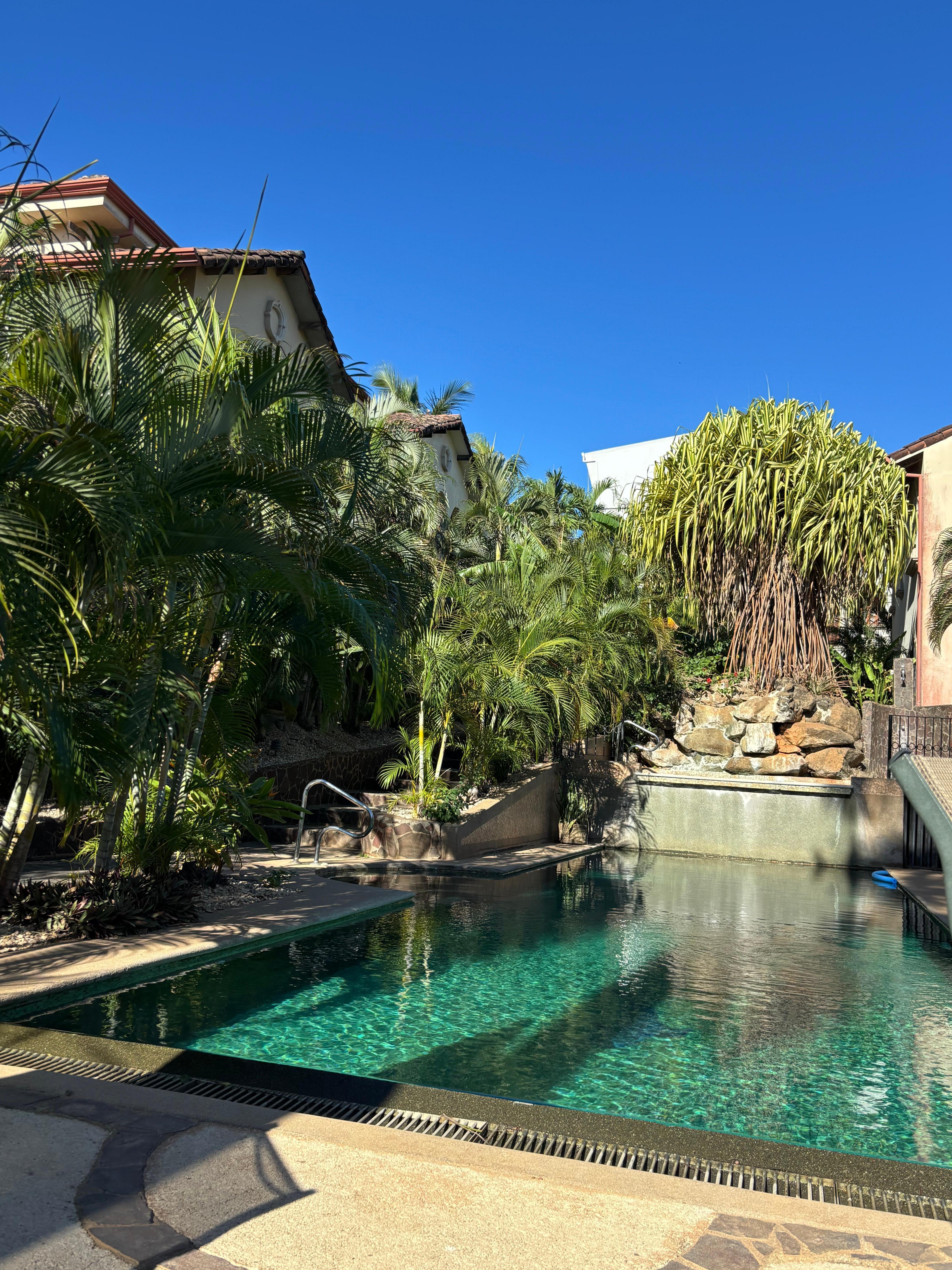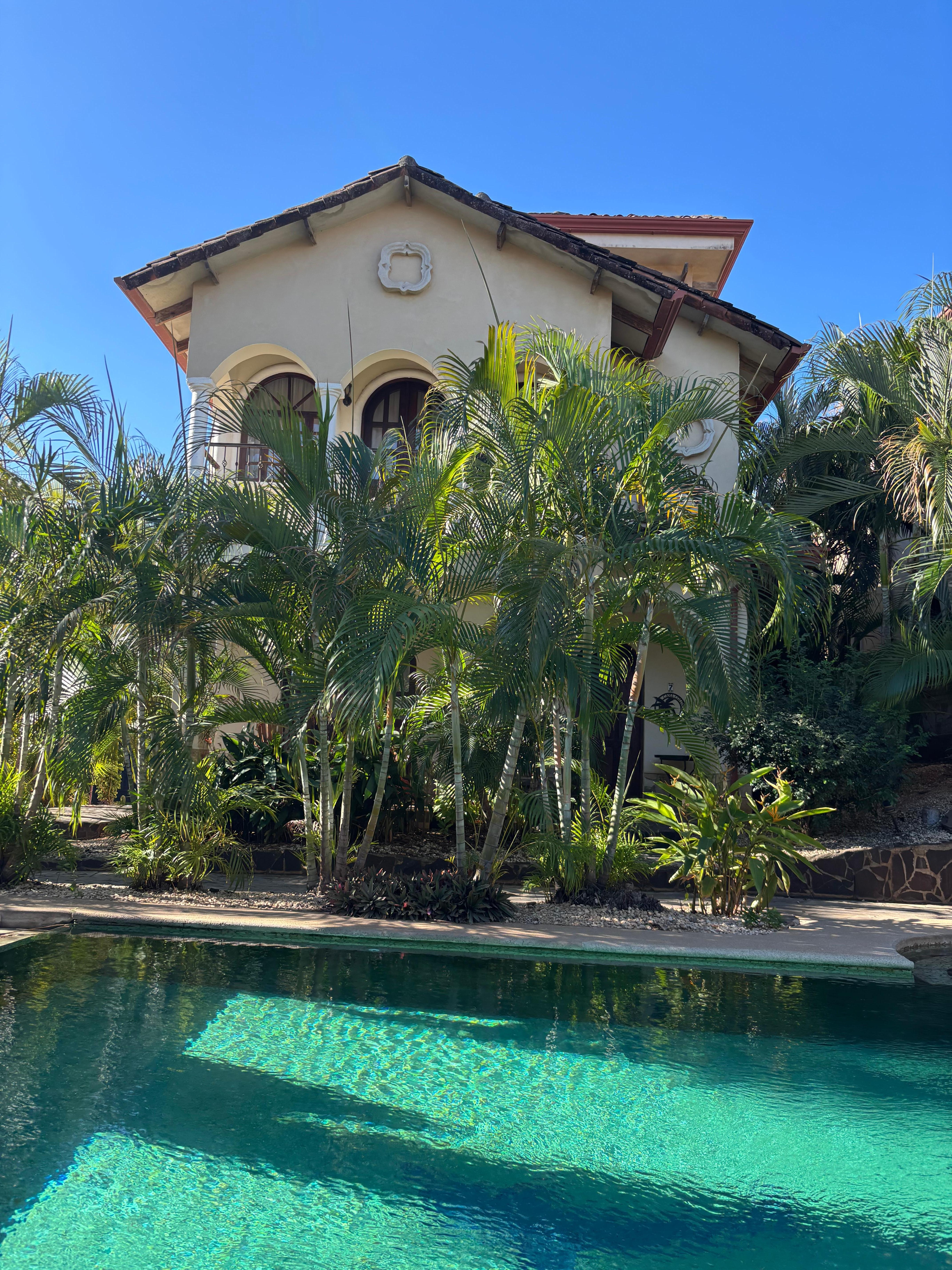Dies ist ein alleinstehendes Haus, keine Eigentumswohnung. Keine langen Flure, keine Aufzüge. Eine voll ausgestattete Küche mit Geschirrspüler, Waschküche, 2 Schlafzimmer, 2 1/2 Bad. In Costa Rica. Wir nennen es eine Villa und dazu gehört Ihr eigener privater Parkplatz nur wenige Schritte entfernt. Wenn Sie keine Lust zum Fahren haben, ist dies kein Problem, da alles zu Fuß erreichbar ist und Sie Tamarindo und die freundlichen Einheimischen besser genießen können. Der unglaubliche Strand ist nur 850 Meter entfernt. Über eine halbe Meile Abenteuer im Herzen der Stadt.