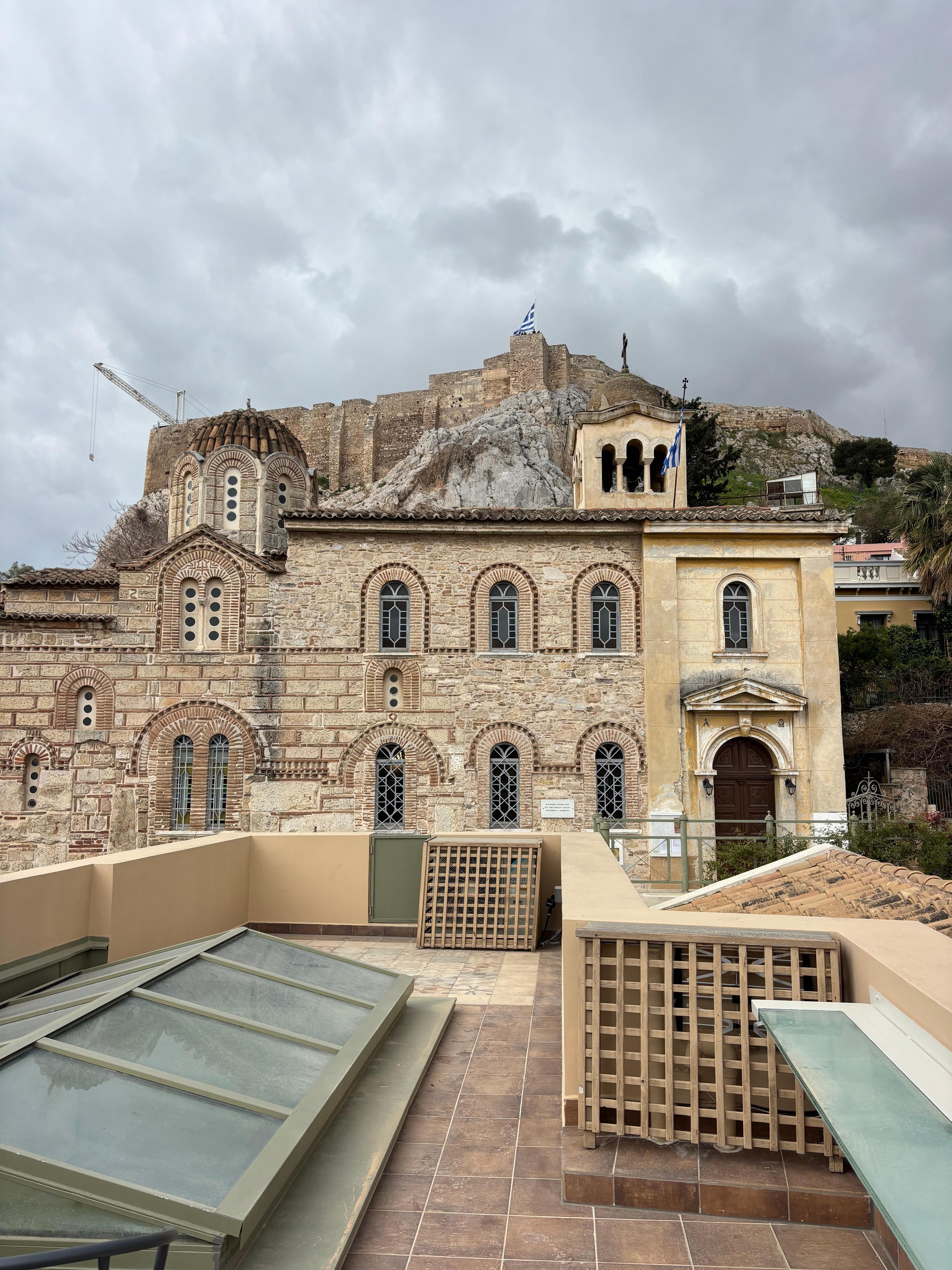 Seine einzigartige Aussicht umfasst die Akropolis-Hügel und die Kirche der Heiligen Tade gebaut während der byzantinischen Ära.