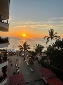 Amazing Views from 2-bdrm condo on the beach in Puerto Vallarta with AC & WiFi.