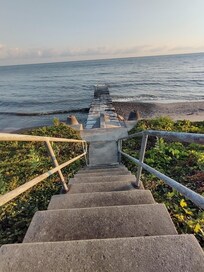 With 100 feet of shoreline in Madison-on-the Lake, Ohio. Built in 1930. Faces north with great lakeside view, smooth stone beach, and beautiful sunrise and sunset March thru November (sunsets year-round). Swimming from beach and dock in front of cottage. Quirks include dated appliances and antique beds. 2 bedrooms sleep 4 downstairs. Loft-type sleeping upstairs, with 4 additional single beds. Two full baths, one on each level. Additional ½ bath on first floor. Hardwood floors and pine paneling throughout. Period 1950 stove with 2 working burners and working oven. Dishwasher, disposal, microwave, washing machine and dryer. Window unit AC upstairs. WiFi. Driveway parking for 3 cars. Easy access to grocery stores, shops, restaurants, and several wineries.