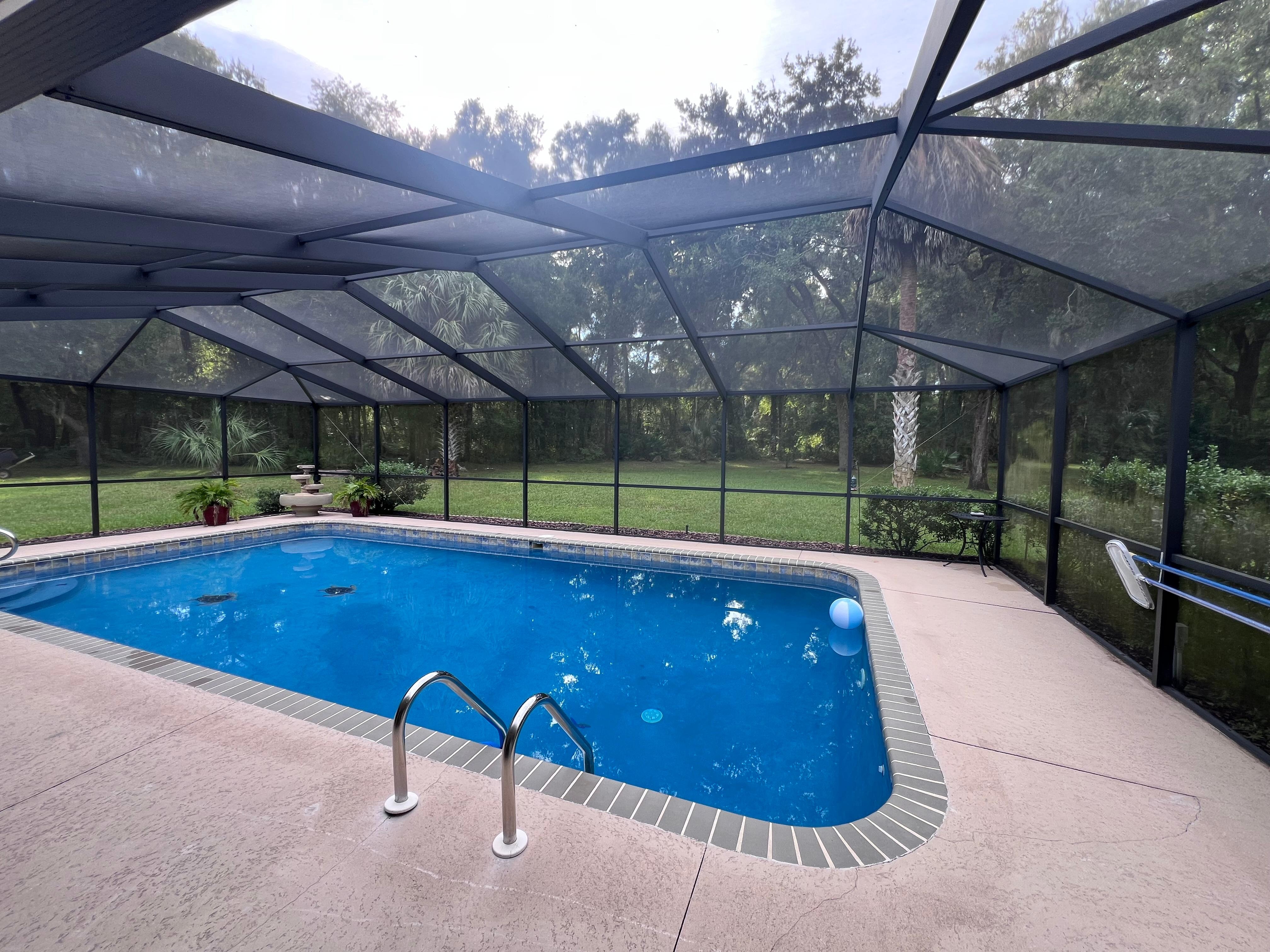 Freuen Sie sich darauf, Tage in der Lanai zu verbringen, wo ein großer Pool und reichlich Gartenmöbel lädt Spaß-gefüllten Nachmittage. Als die Sonne untergeht, kann man sich von über 100 Vogelarten durchsetzen, die am Rand des Flusses leben, einschließlich Adler, Fischadler und Eulen! Fühlen Sie sich frei, das Gemeinschaftssteg zu benutzen, das ein Boot jeder Größe auf den Withlacoochee River führt, der eine Verbindung zum Rainbow River und zum Lake Rousseau herstellt.