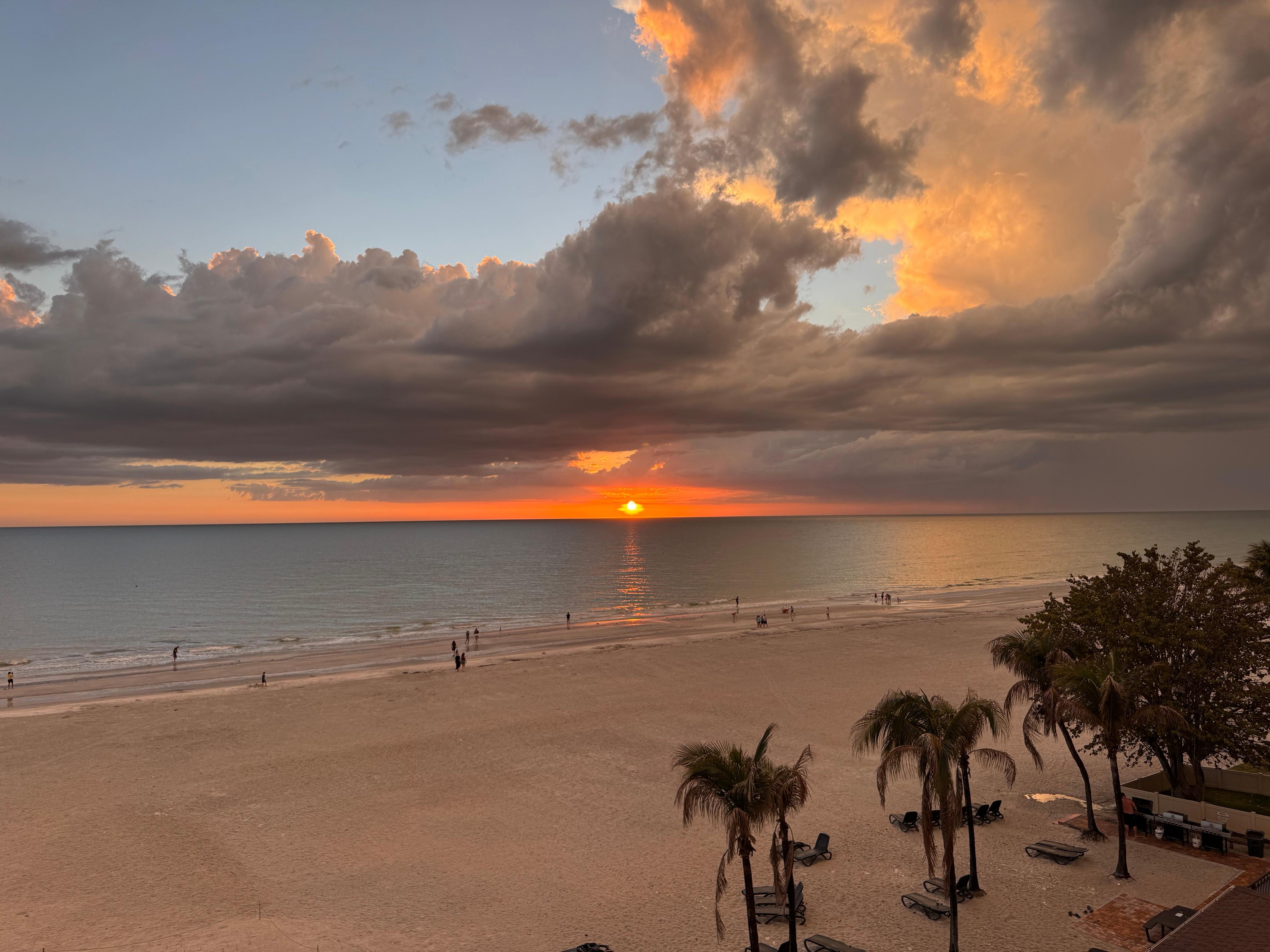 This big, bright beachfront corner unit has the best views in the building! Located in beautiful Redington Shores with wide, soft, white sand beach. There is a large heated beachfront pool with bathroom facilities, outdoor showers, BBQs, Tiki huts and pool loungers. There is also a newly paved tennis court and we provide tennis rackets and balls.