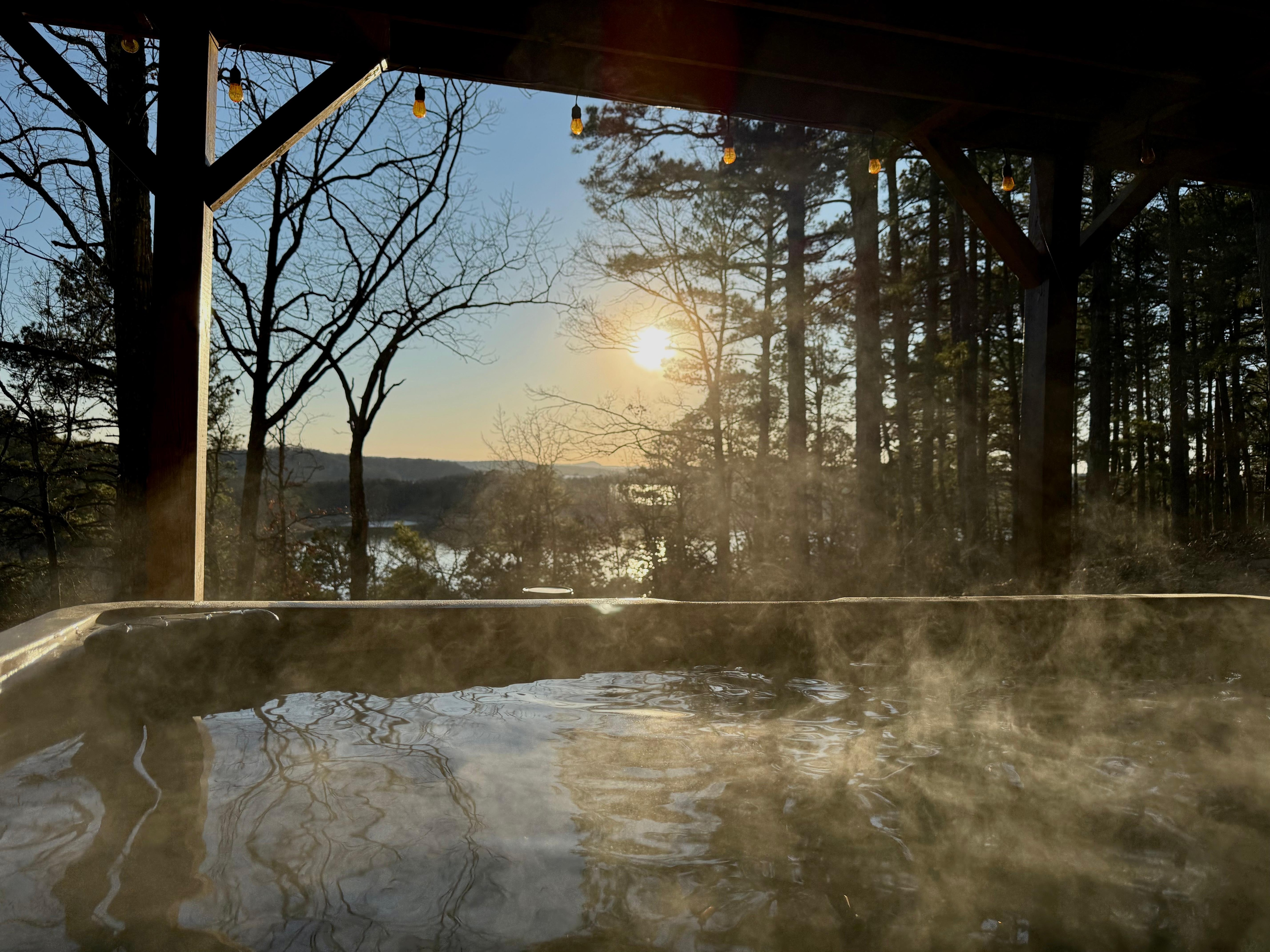 Take it easy at this unique and tranquil Luxury Treehouse Cabin nestled in the Ozark Mountains overlooking Norfork Lake, while relaxing in your private Hot Tub!