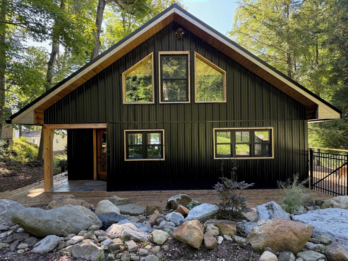 Modern 6 Bed / 4 full Bath home and tiny home with stunning lake views, private dock, and salt water hot tub. Located in a quiet, year-round neighborhood just minutes from Peak n’ Peek and Bear Ridge Destination. Dog-friendly. Kayaks, paddle boards, Bote floats, bikes, games, grill, firepit on lakefront.