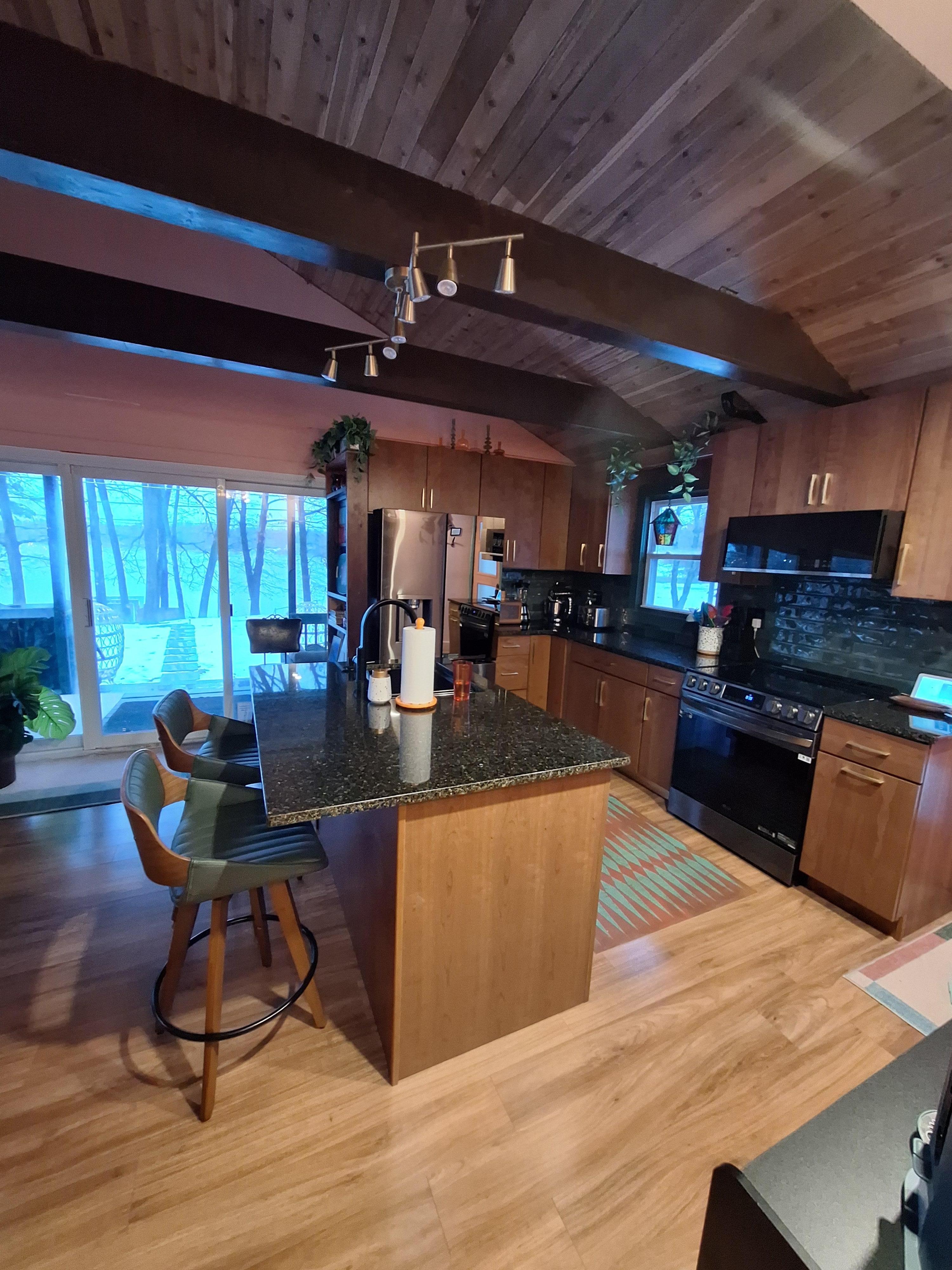 The Overlook is far out groovy place in a happening kind of way! Take a trip to the lake AND to yesteryearâŠcirca 19672. All of the rooms in the Overlook are inspired by this eraâenjoy the Brady-inspired kitchen and living area (and be sure to spin some records on our vintage record console). Enjoy the Hollywood regency style bathroom. Stay in either the 2 twin XL Siesta room, or the queen Lotus room, both with the most tasteful of mid century decor. We kept the vintage style going on the deck, but you wonât be able to take your eyes off the restful, leafy lake view.