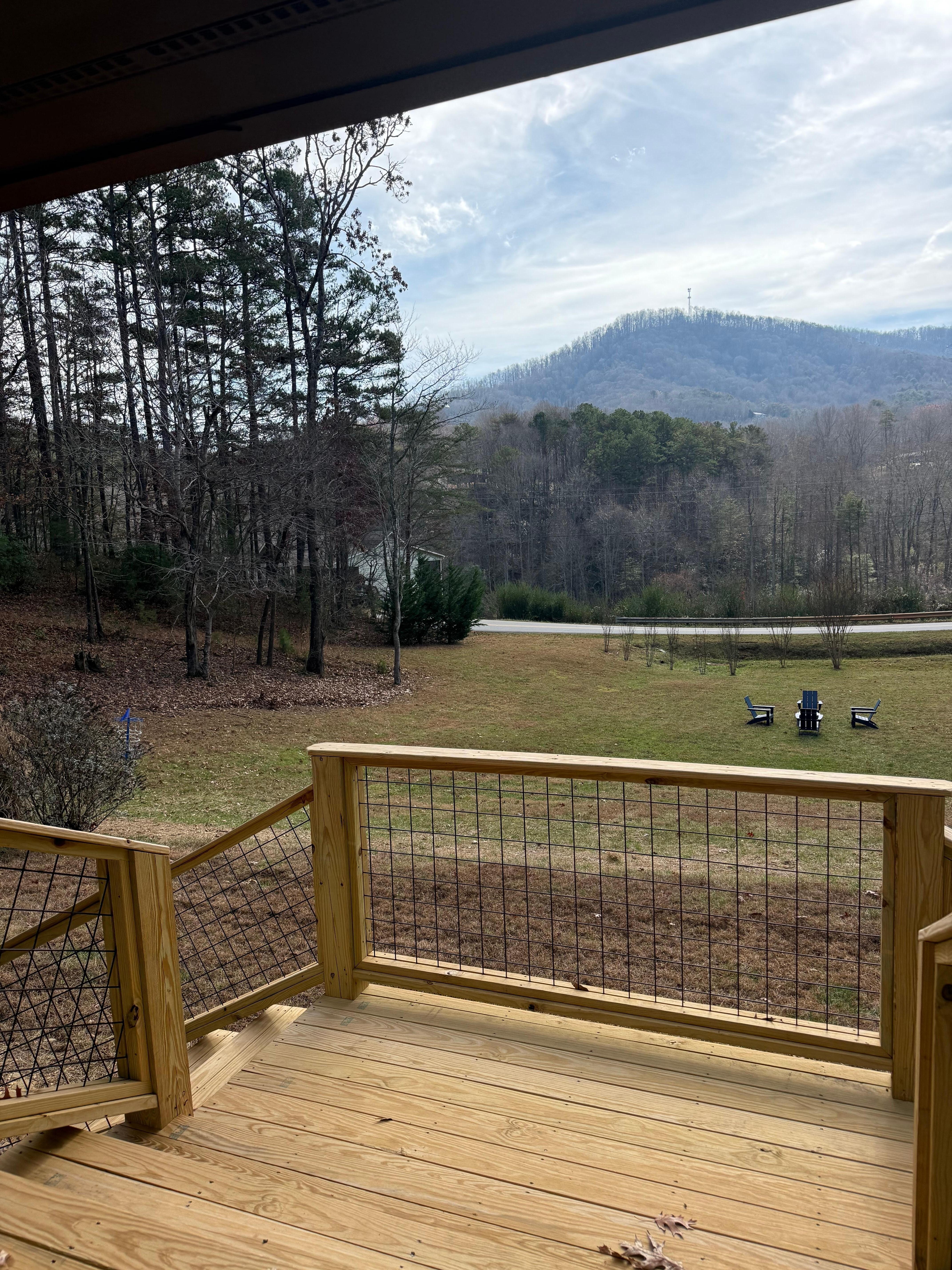 Expansive mountain views from the front of the home, porch, and front yard